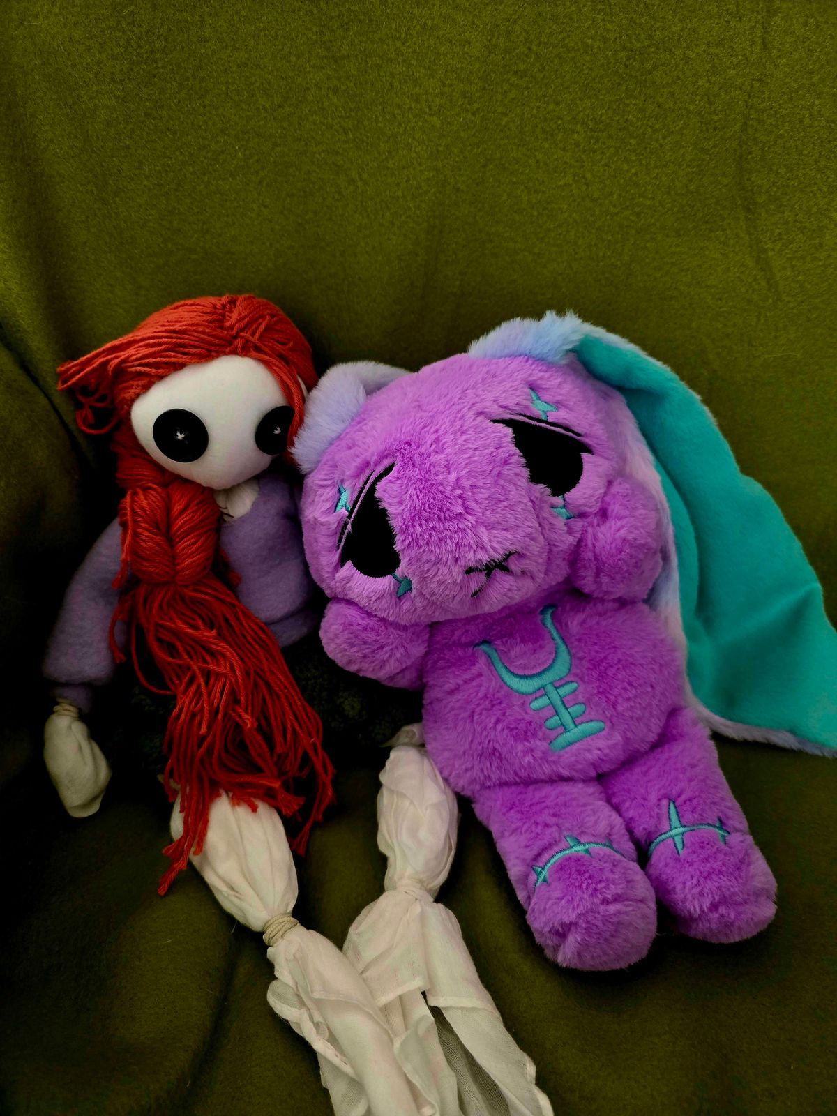 I absolutely love how soft and huggable they are! I have issues sleeping due to AD(H)D and anxiety, but I seem to drift off easier when I’m hugging them close to my chest. 💜 I don’t feel so alone, worrying if my crying or worrying is ever exhausting to others… I take them to work with me when I’m doing a med pass and I feel so much better. Thank you for gifting me a wonderful friend of my favorite color!
