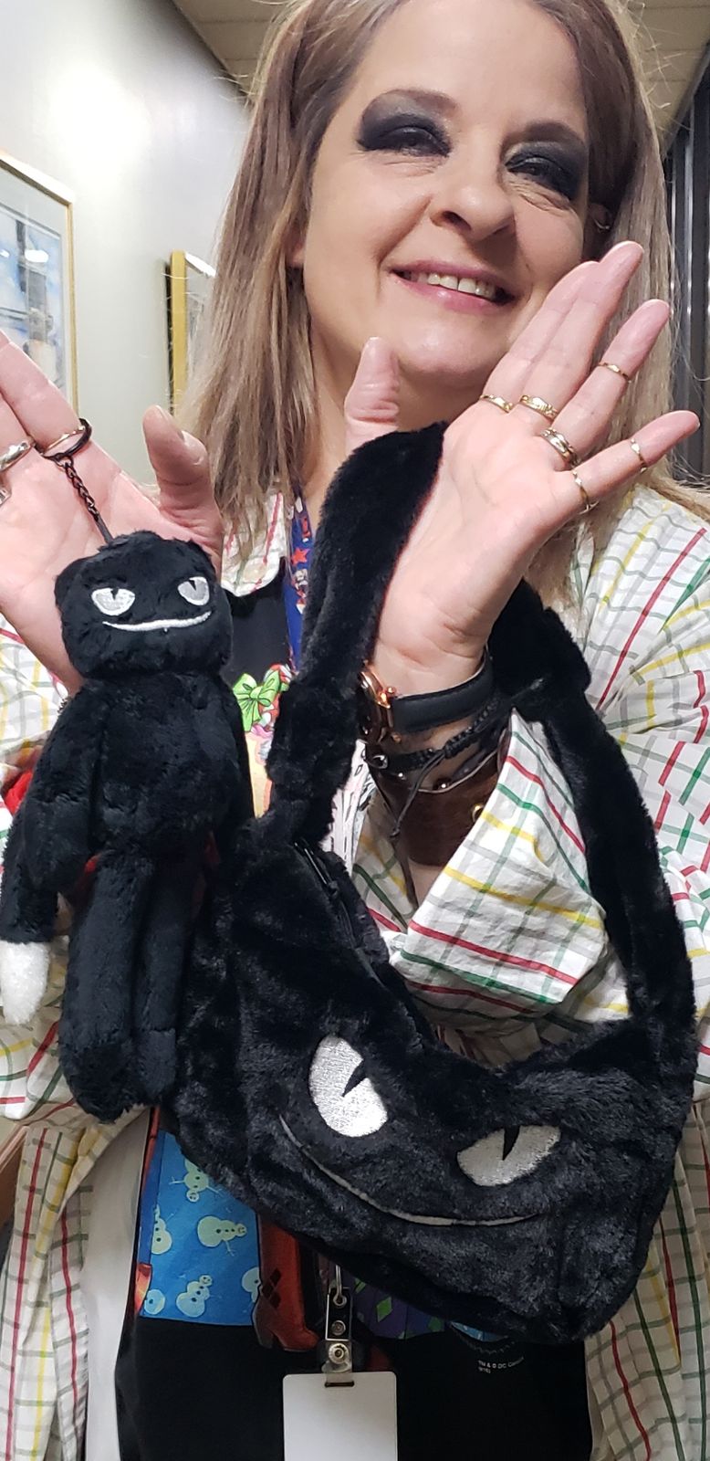 This mini Scruffy Bumps is diabolically cute along with the bag. Super soft fur. That grin, and the little white tail tip are purrfect. The bag isn’t big, but that’s fine, I’ll only be using it for special occasions. With Scruffy hanging on the strap of course. He’s a nice little comfort critter. But please bring back the bigger one so I can have a cuddle buddy who will keep me company and keep me safe.