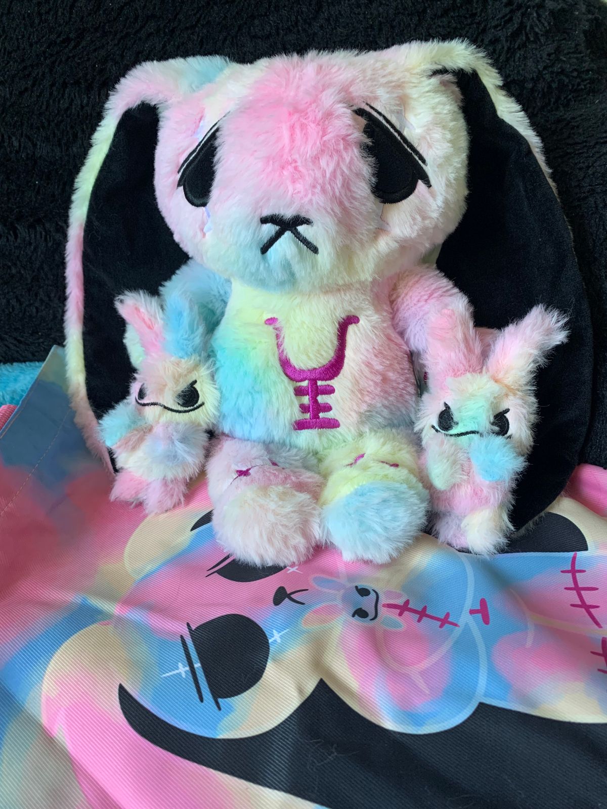 Came in just under two weeks! I originally ordered the hot pink bunny but once I saw there was a pinky tye dye edition I knew I messed up and immedietly contacted support a couple days after my order was made to see if they could switch it and they took care of it right away! I love her so much🩷so floppy cute and soft and I absolutely adore the lil buns she comes with zipped in her back 😁thank you so much!!