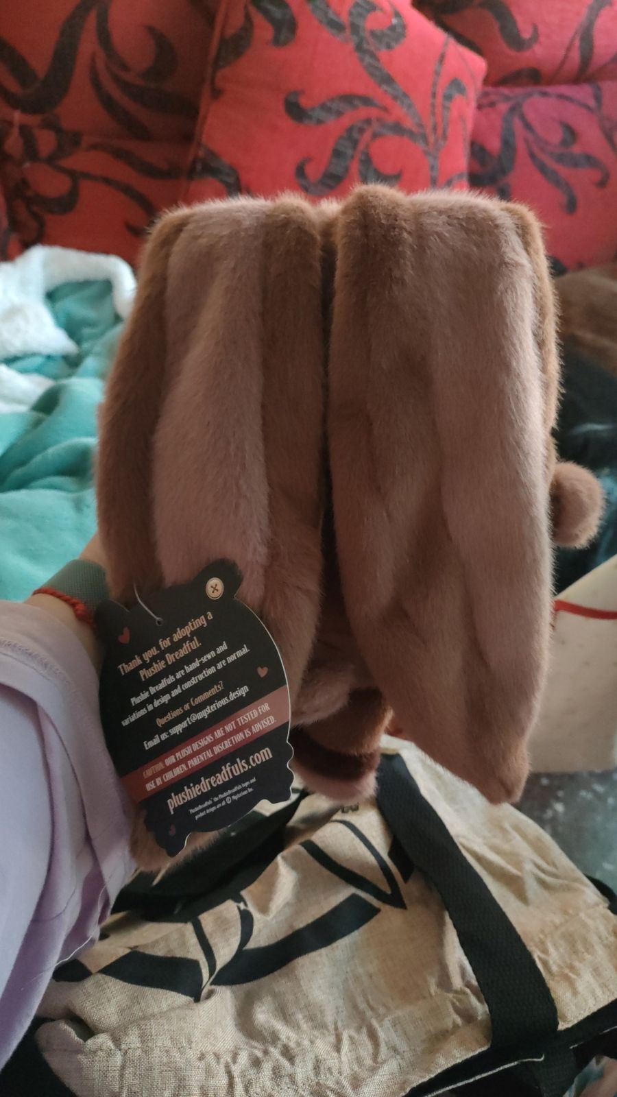 Amazing quality. Love the brown color palette that was chosen for this beautiful design and the tote bag that it was received with. The material used that make up the plushie’s fur feels incredibly nice and soft to the touch. This is my first purchase from plushie dreadful but definitely not my last lol. Will be coming back again for more. 🤎