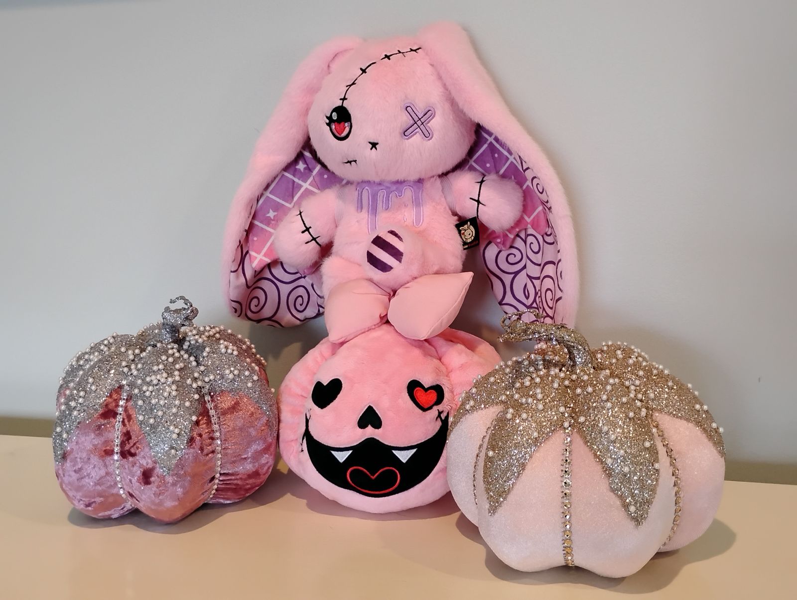 I have to say Tricksee Belle is my favorite out of all the plushie dreadful plushies I own from this company. My daughter and I , I have to say fortunately or unfortunately own many of the plushies because we have many medical problems. For example, my daughter has the autism rabbit, celiac disease rabbit and many others. I have the hypothyroidism , breast cancer or cancer warrior rabbit and asthma rabbit and many more. But Tricksee was different because she is not a health rabbit. She has the biggest pumpkin head and her smile just makes me laugh. She has the sweetest bow on her head. The typical floppy bunny ears and the fluffy tail. I have not tried it yet but I believe the pumpkin head comes off to reveal her actual face. She is so soft and huggable. She makes me forget that we have so many medical problems that unfortunately we have. But she also makes me feel that we shouldn’t give up and keep going because life can be funny and keep your head up. She makes me forget she is a Halloween rabbit and is just here to make us smile through the pain. I highly recommend her even though Halloween has come and gone. One day I will have the courage to see what she actually looks like underneath her head.