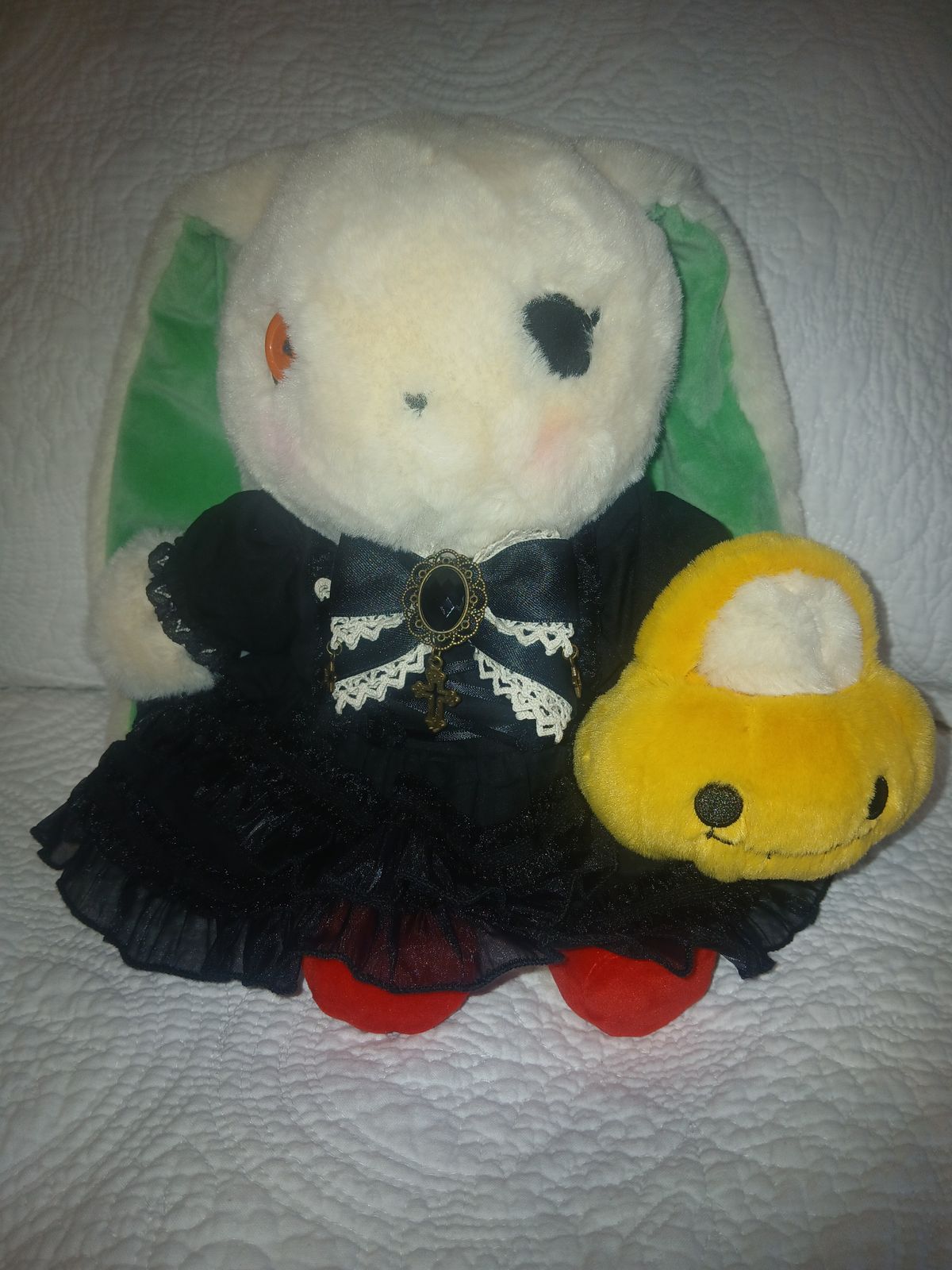 I wasn't planning on getting any plushies aside from the Alice related ones, but this one was so cute, I wouldn't resist. I love her little pumpkin bag, her dress is adorable, and I thought the one red button eye was a fun little feature.