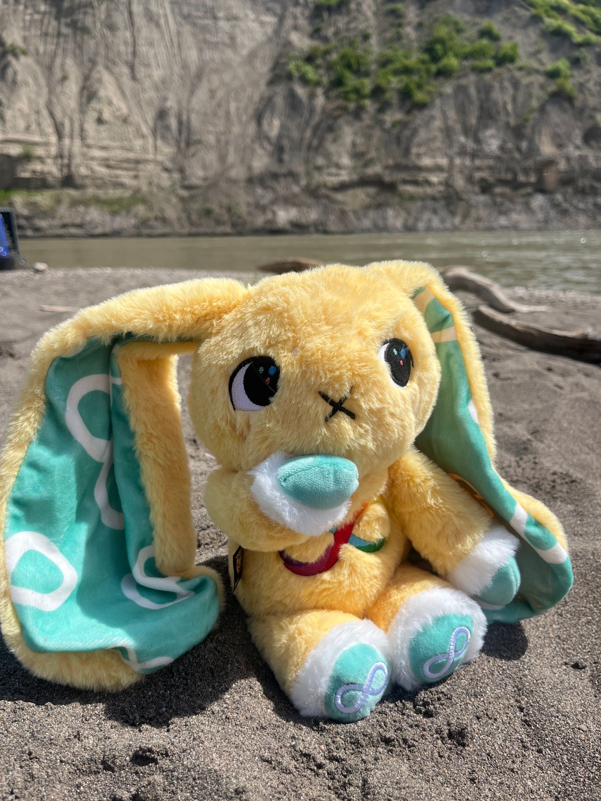 Some bunnies don’t whisper. They radiate. This is the Autism Spectrum Rabbit, and they shine in full spectrum. From the rainbow infinity symbol on their chest to the patterned teal that lines their ears and paws, this plushie doesn’t try to blend in. They are here to exist unapologetically and honestly, soft but strong, quiet but vibrant.