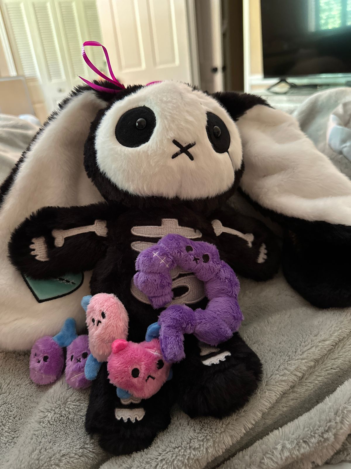 This plush skeleton bunny comes pre-loaded with its own detachable organ set, including heart, lungs, stomach, and intestines. They're soft, squishy, and perfectly portable. Tuck them inside the main plushie's chest cavity or keep them out when you need a little backup support for the part that’s giving you grief.