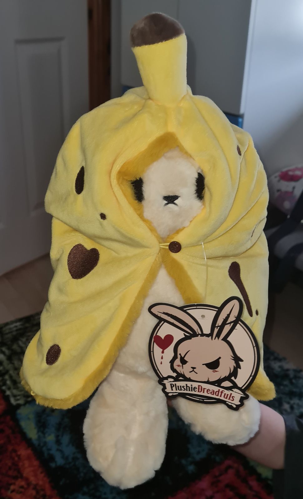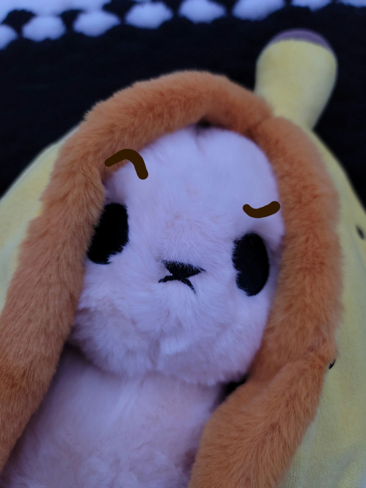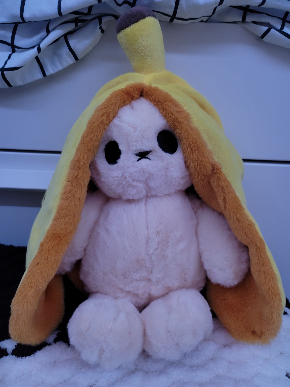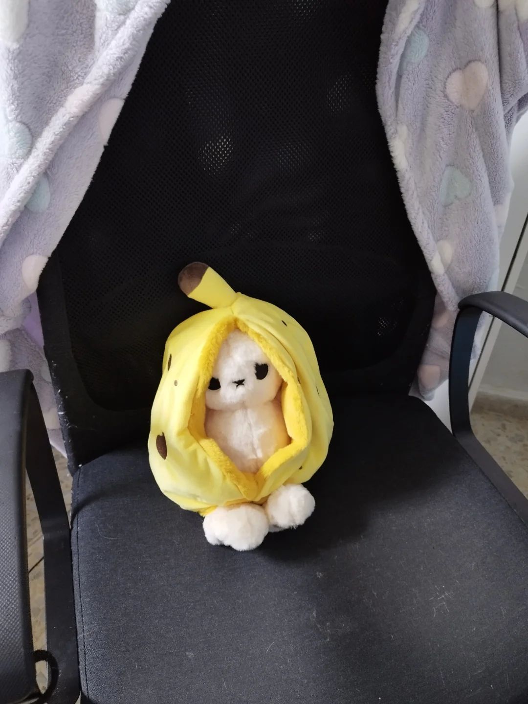 What the flip he's so cute I love him so much he looks really stupid without the peel which makes me giggle I love his stupid circle banana head — umm ok I think he's a bit camera shy he just closed his peel and ran off in the middle of the shoot but I guess you can't really see much through a banana peel because he ran into the wall and is just laying there... bro said gotta make like a banana and split but anyways thanks for reading guys unfortunately it's time for me to go he's not convinced that the cameras are off