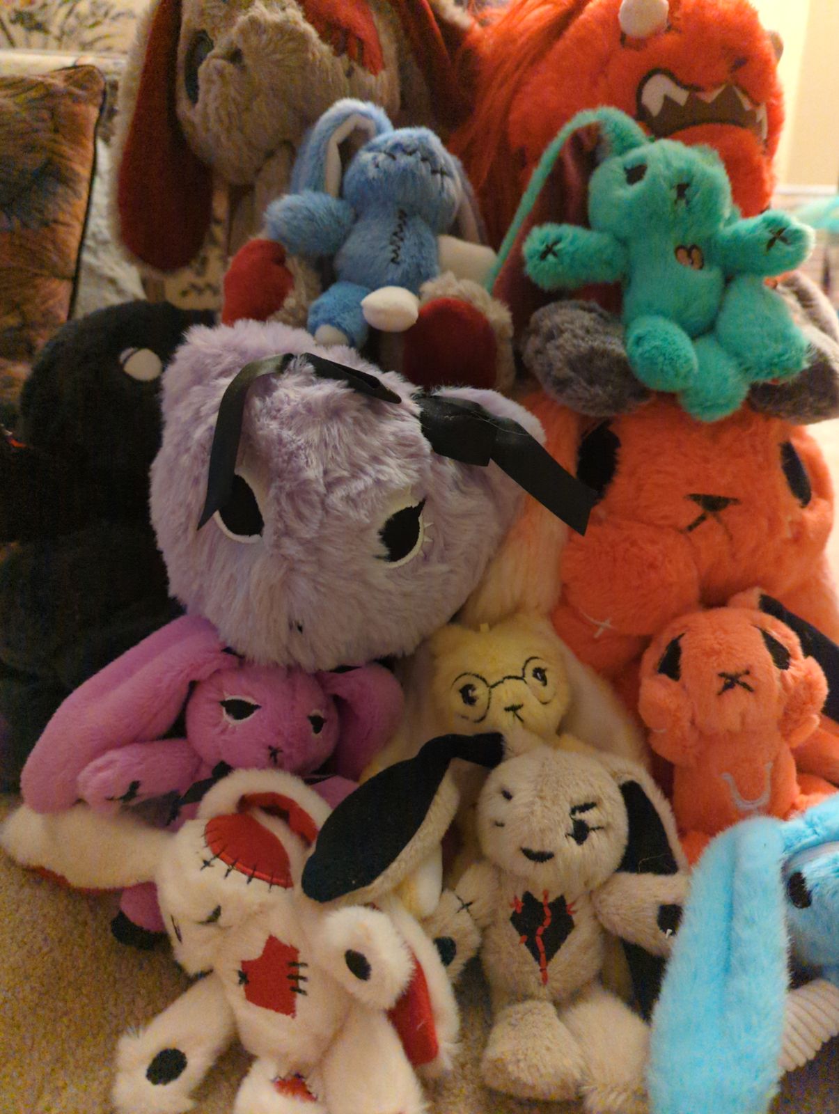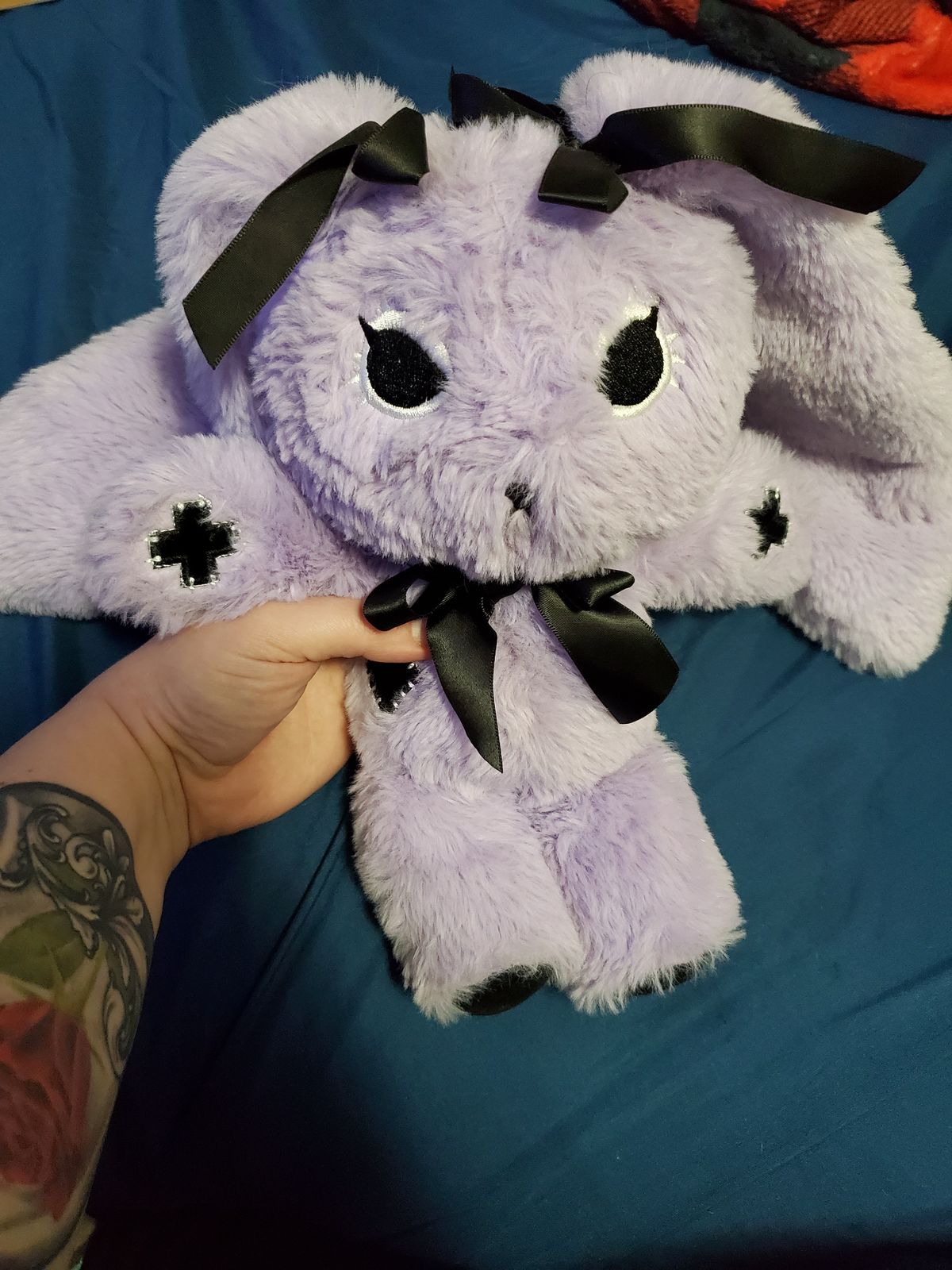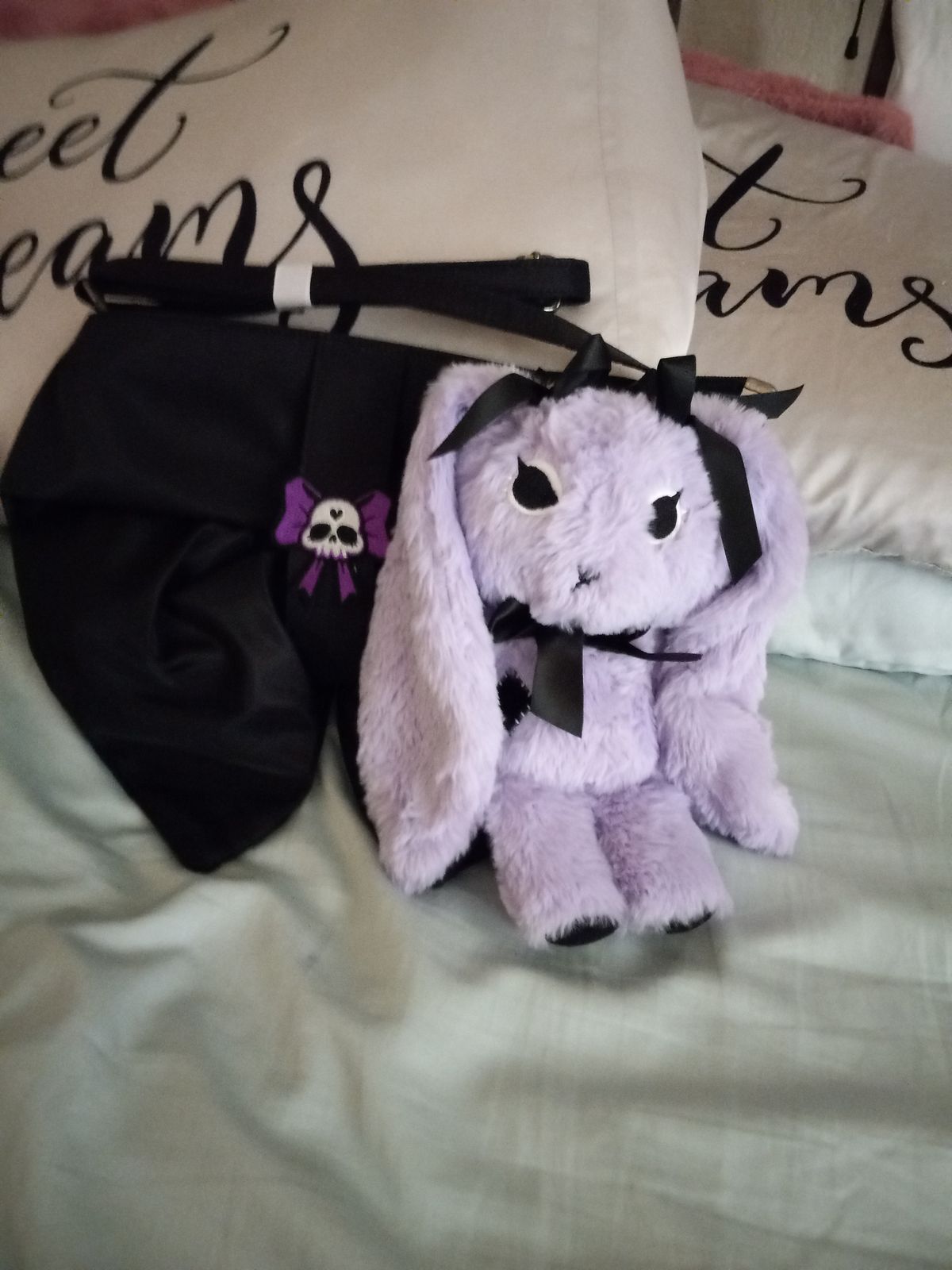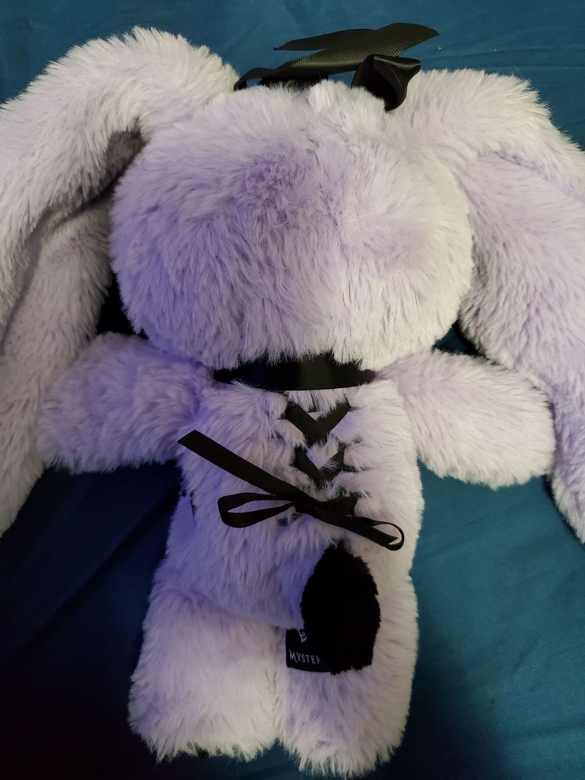She's amazing! And very cute! The bag is super adorable as well. The only complaint that I have is that there are tiny bits of what seems to be some form of plastic sewn into some of her eyelashes. Other than that though, Coco (anxiety bunny, the orange one) has a new friend! Mysterious is such a great company, so I'll buy some more plushies when I can.