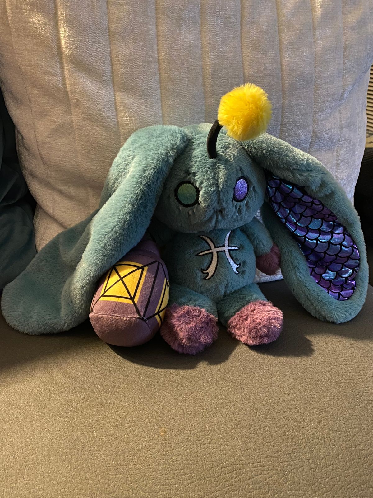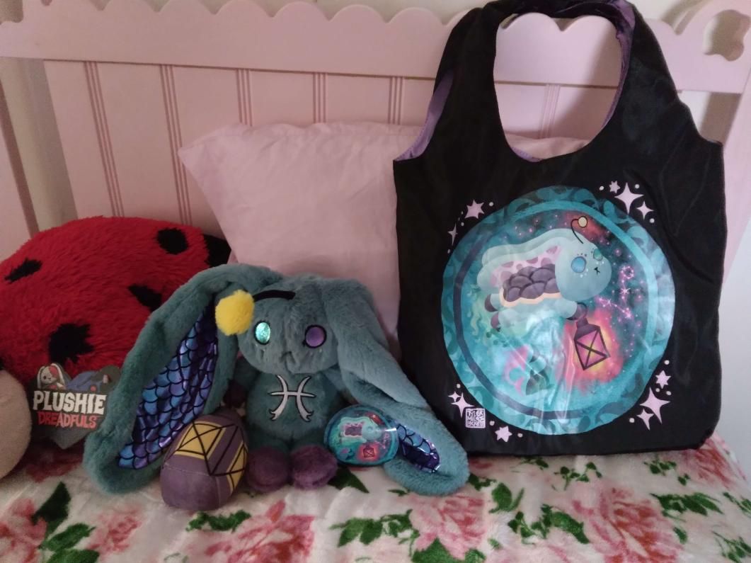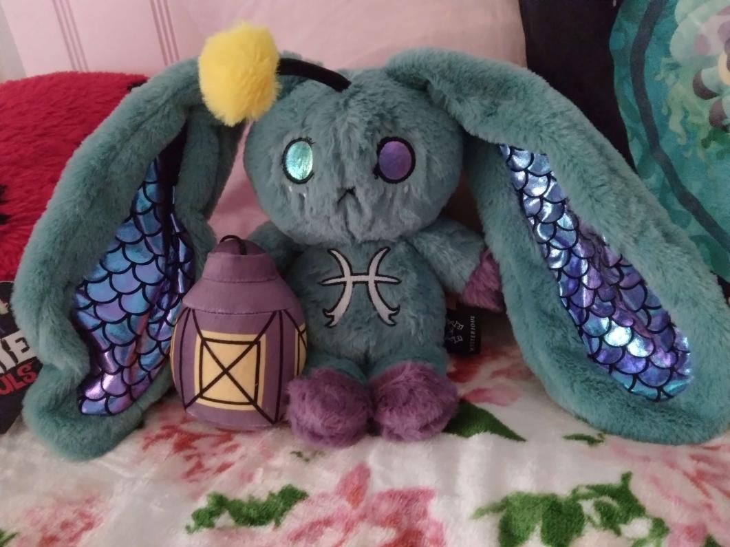 The lantern it comes with is attached to the rabbit, just as a heads up. I wasn't sure if was a loose accessory, but it's not a big issue for me. It came in a huge tote and a beautiful matching sticker! Everything is so well made. This is the second Plushie Dreadful I've purchased, so I'm proud I can give someone I love a Plushie Dreadful Rabbit of their very own too!