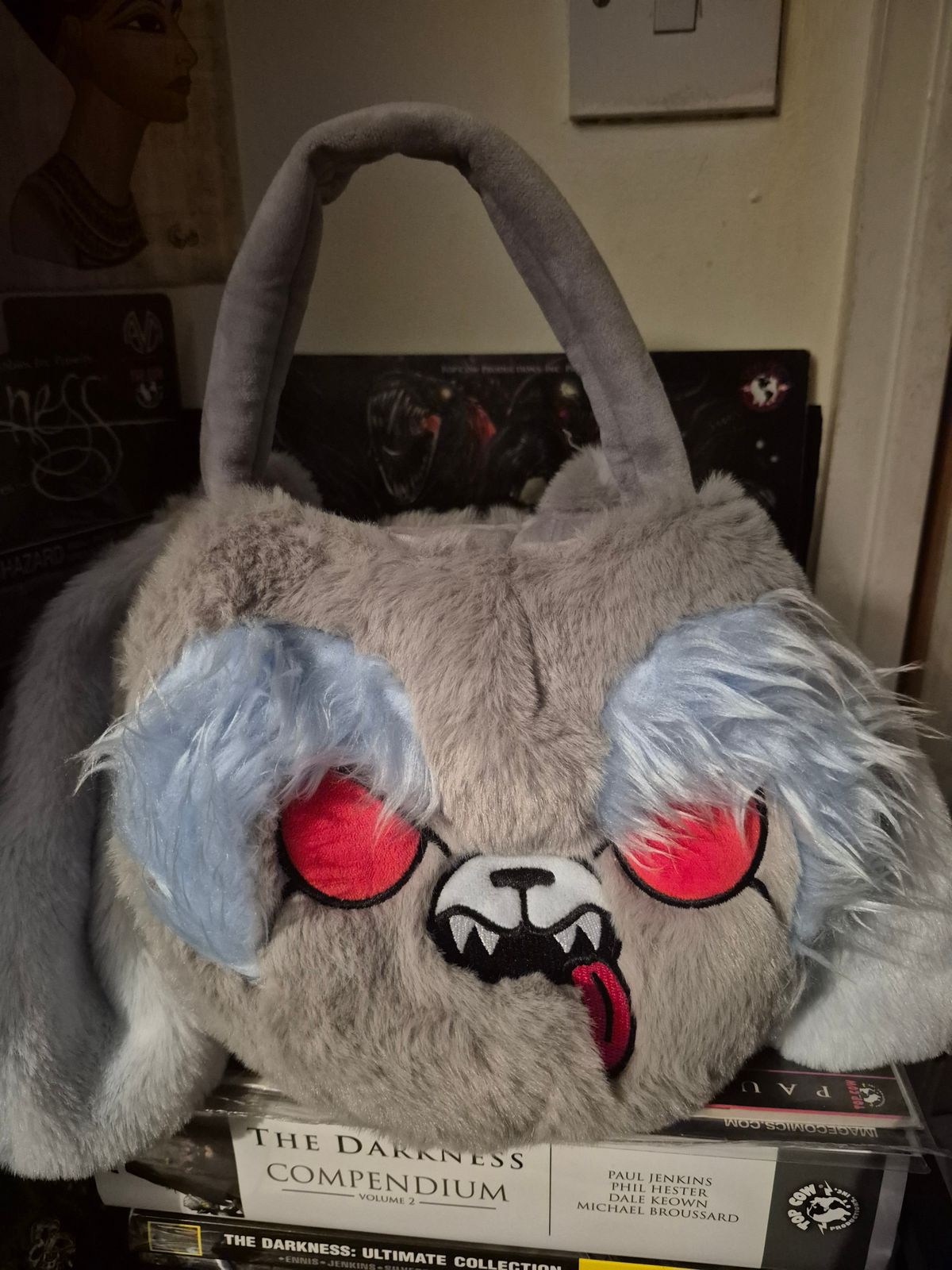 With a furiously cute gray and white body, piercing red eyes, and an expression that says, "Hug me... or else," this plushie prowls the night, sniffing out the juiciest carrots and the coziest nooks. Don’t be fooled by its fierce facade; beneath that fluffy exterior beats the heart of a loyal cuddle companion. Beware, though—once it locks its snuggly paws around you, there’s no escape from its furry embrace!