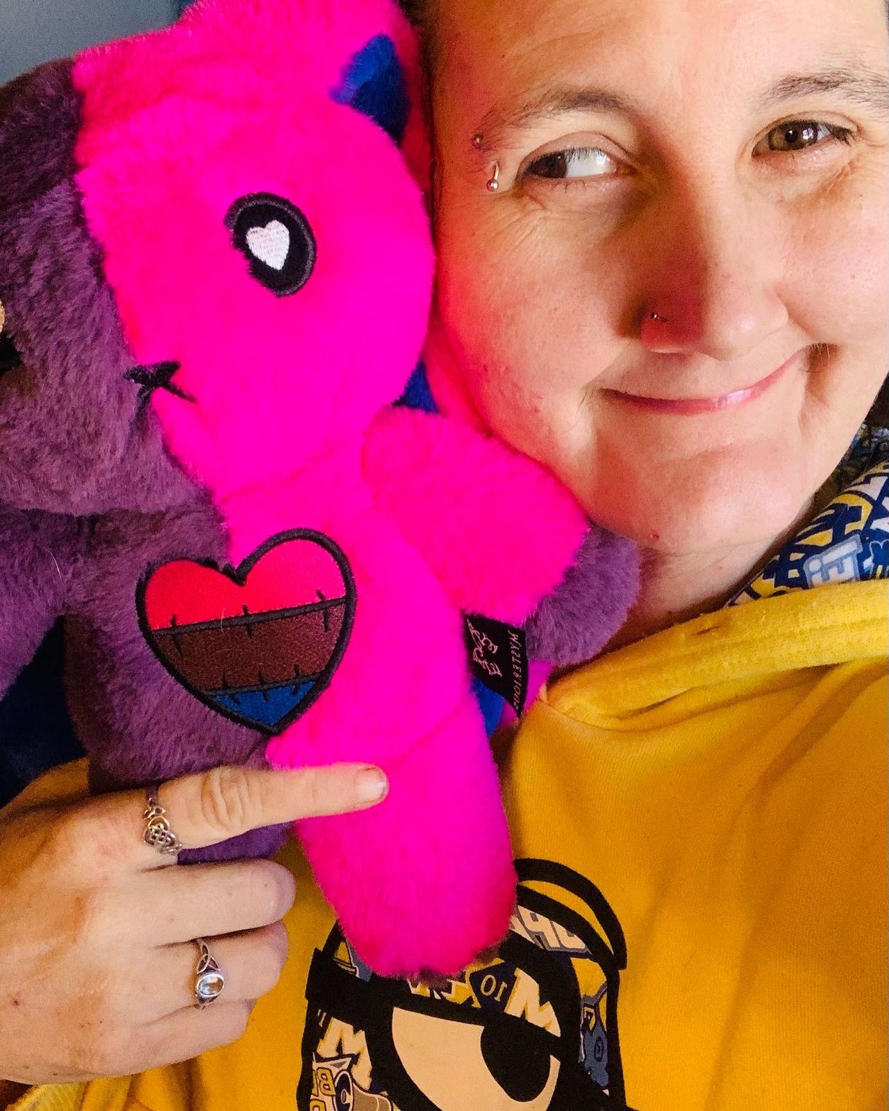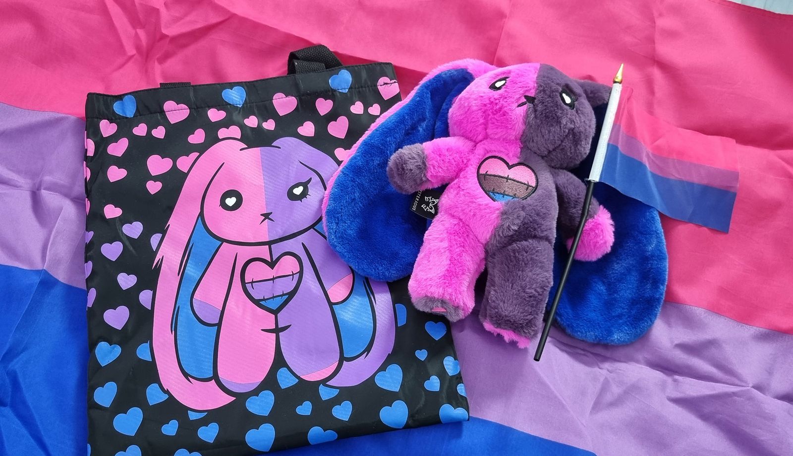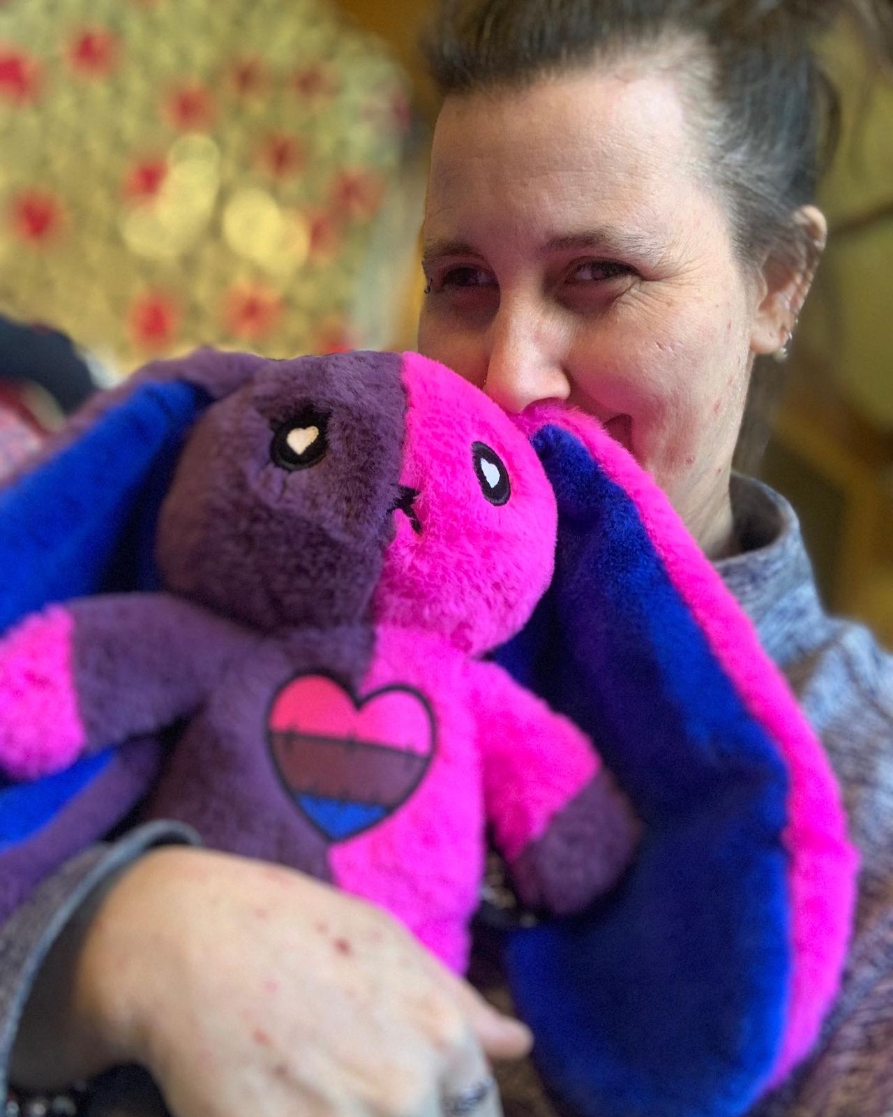 A Crowd-Designed plush rabbit made by fans and designers who are bisexual.