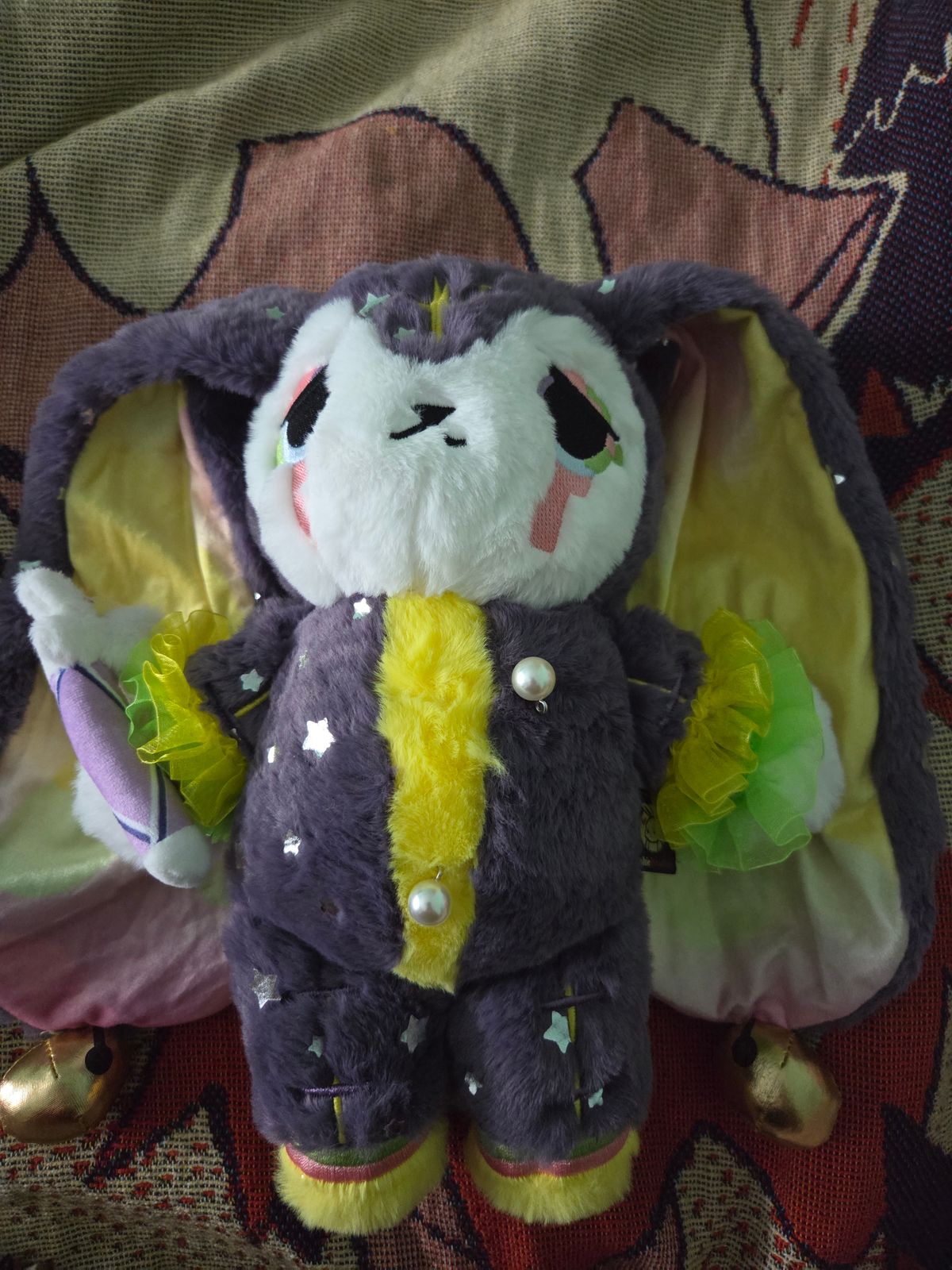 Clothed in midnight velvet sprinkled with silver stars, he holds a shimmering wand filled with dreamlight. The bells that rest in his long ears can ring, their sound acting as both anchor and lantern, keeping the dreamer safe on journeys of lucid dreaming and astral flight.