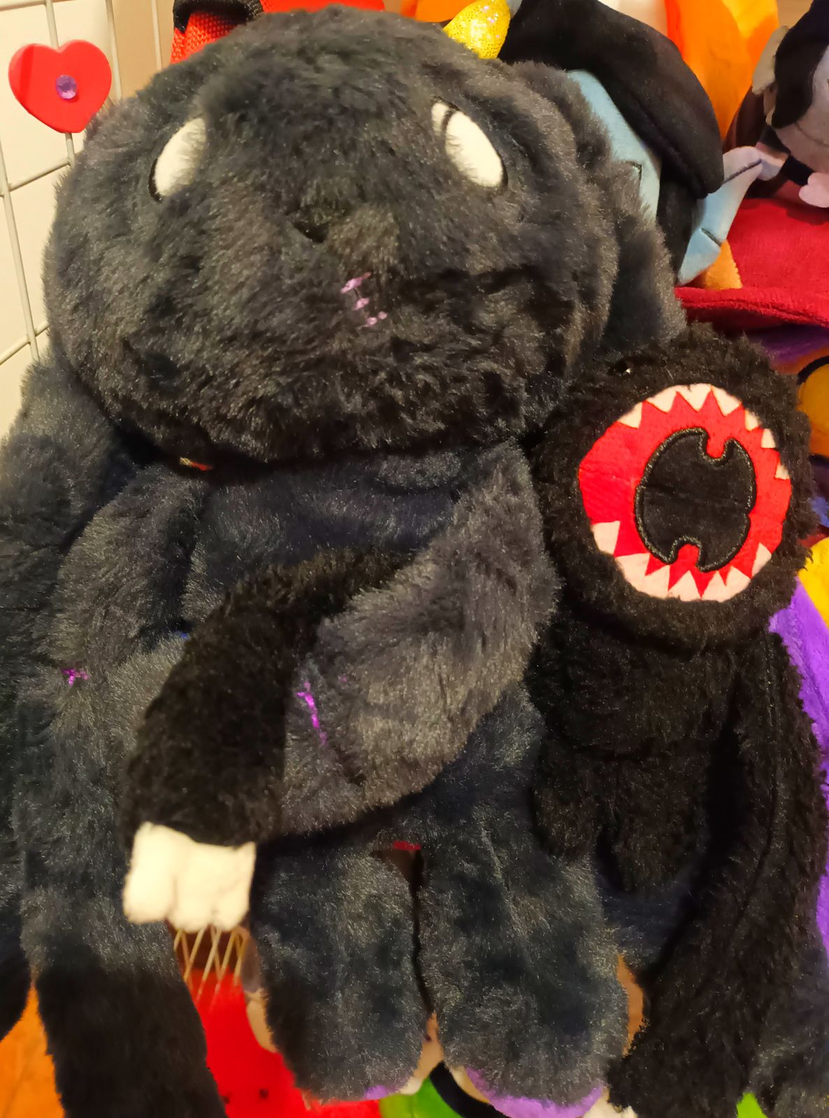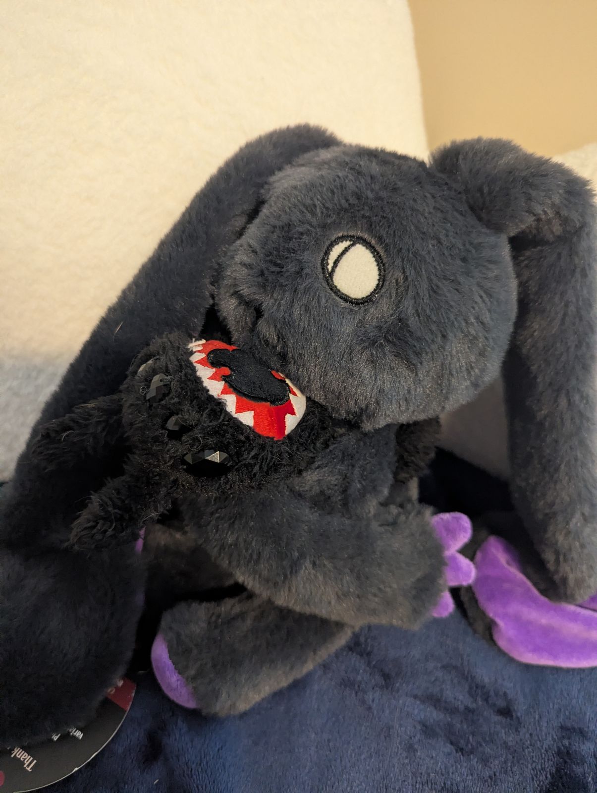 - The teeth of the little stuffed animal that accompanies the rabbit are damaged.