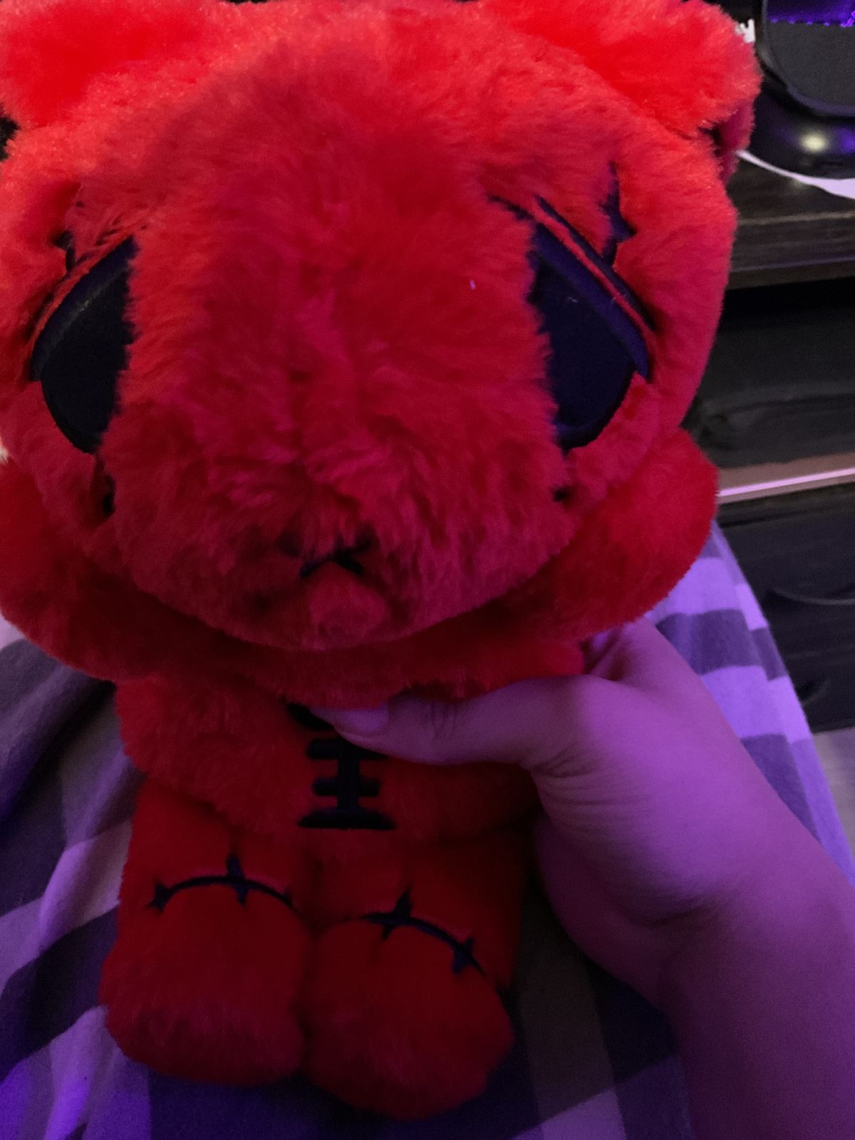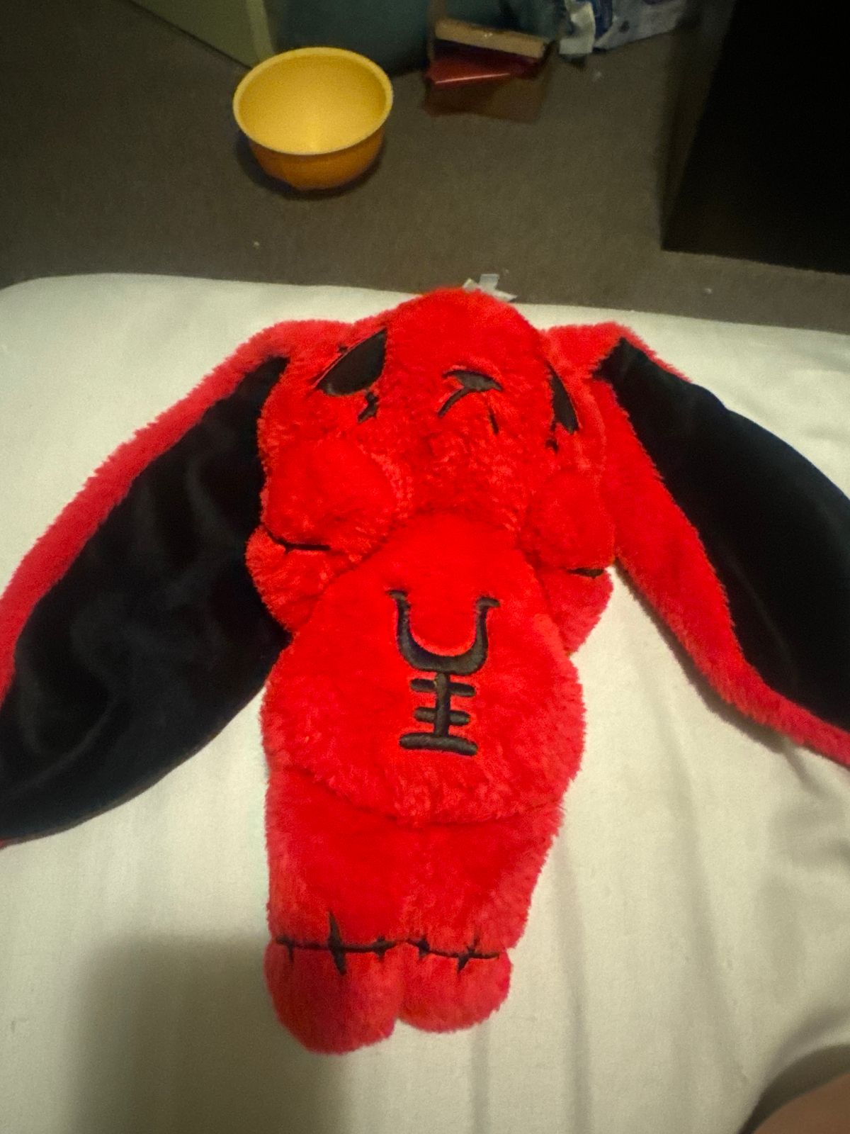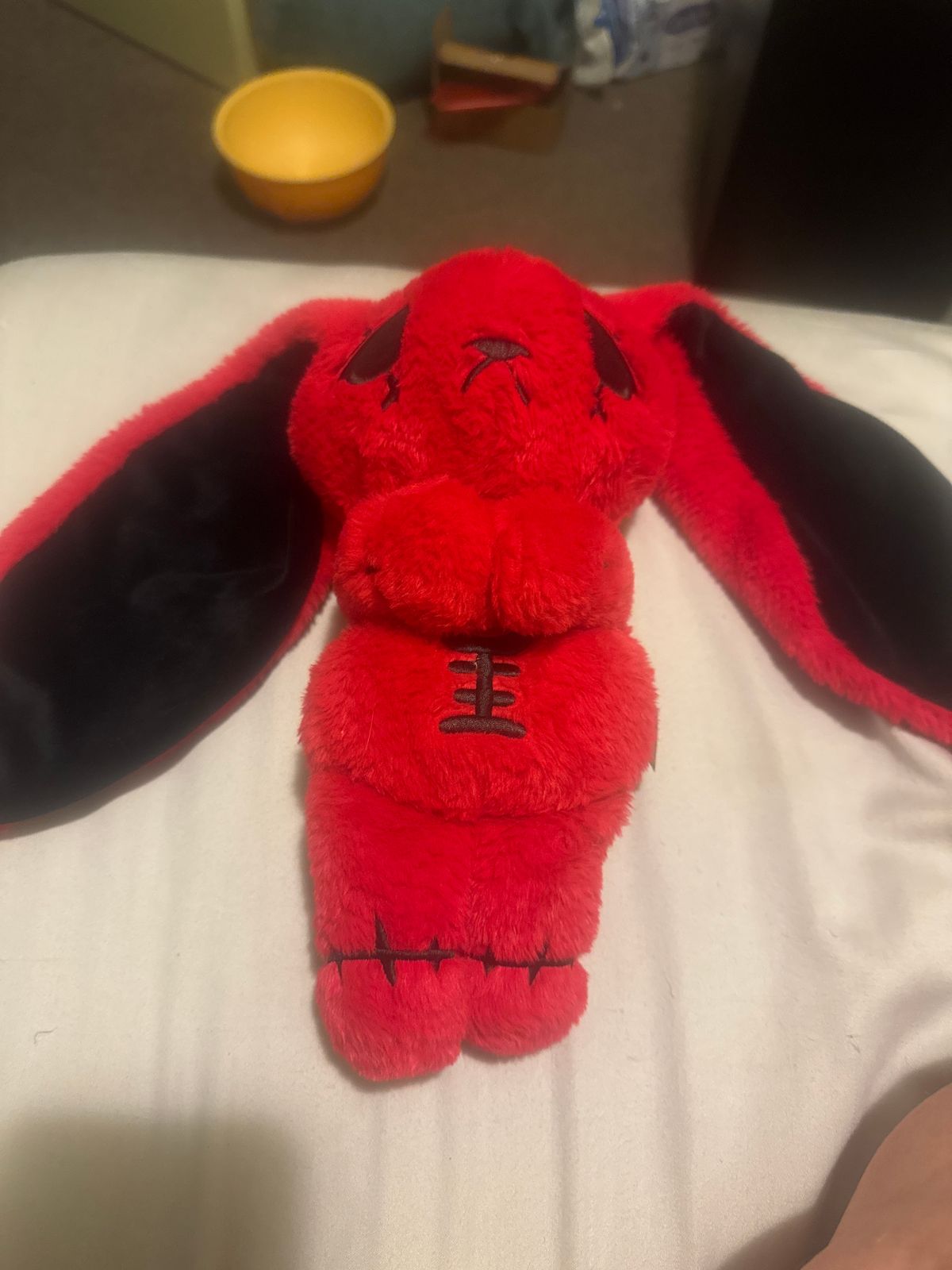 This is officially my all-time favorite Plushie Dreadfuls plush and I was so excited to preorder him!!! I had been waiting for him for a while, and when he finally arrived I was honestly beyond happy. The colors are absolutely perfect. The deep red with the black accents stands out so much, and the little yellow companions make the design feel even more unique and expressive. Every single detail feels thoughtfully made, from the embroidery to the shape and softness of the plush itself.