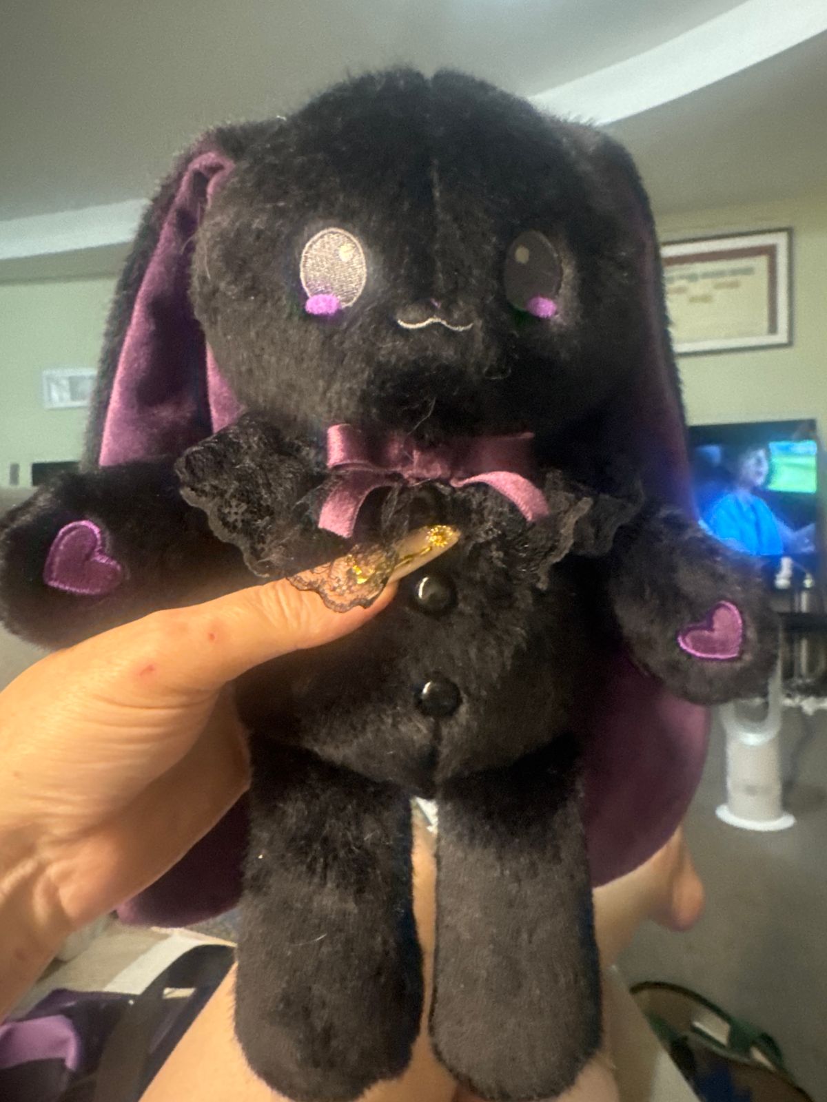 I waited for a long time for this PD to be available and she doesn't disappoint. Love the new type of plush fabric and her facial expression is so evocative of how I feel when thrust into a room of strangers. Mine came with an extra pair of eyeglasses, too. She is now the bestie of my original Goth Girl purple bunny!