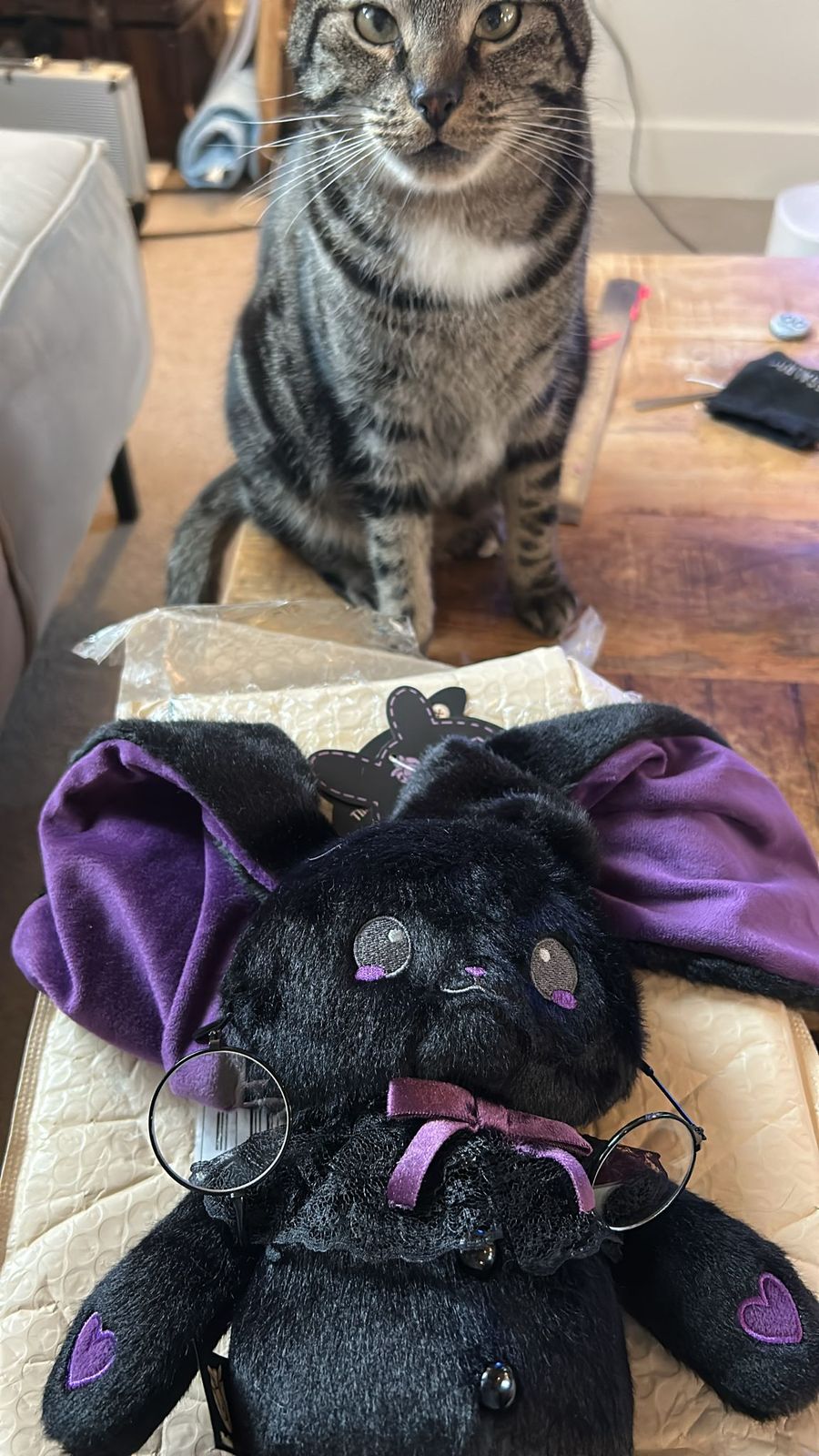 This rabbit is perfect for me, I had to have this as soon as it was released! Its so soft and I love the tote bag that comes with it. I also got the keychain and extra spectacles and a free pen. I have a few other Plushie Dreadfuls and will definitely be adding more to my collection soon✨️