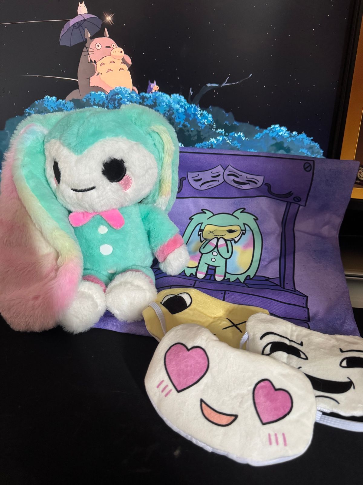 one of my favourite plushie dreadful buns (so far)! as always - ridiculous soft, great quality, and perfect for cuddling. design is thoughtful and fitting for masking, the little masks are a great touch. also adorable as just a little suit wearin clown-sorta cutie ! a great buddy for anyone, especially anyone who deals with the struggles of masking :) (little masks come a little crunckled but smooth out easy by letting ur bun wear them for a bit !)
