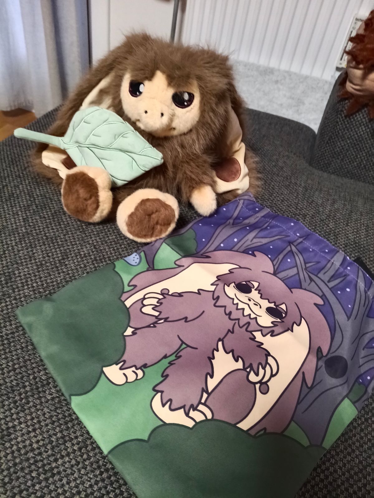 Words cannot encompass how much I adore this sweet, silly floof! Seeing his face is an instant mood booster no matter how I may be feeling at any given moment, and the softness of his fur is absolutely unreal! His legs are also extra floppy which makes him capable of striking all kinds of poses. I love the thread sculpting detail on his feet as well, and his bonus leaf accessory provides the perfect shield against the harsh scrutiny of the eyes of the world. I highly encourage prospective adopters to give Bigfoot a safe place to call home where he no longer has to be afraid of being seen.