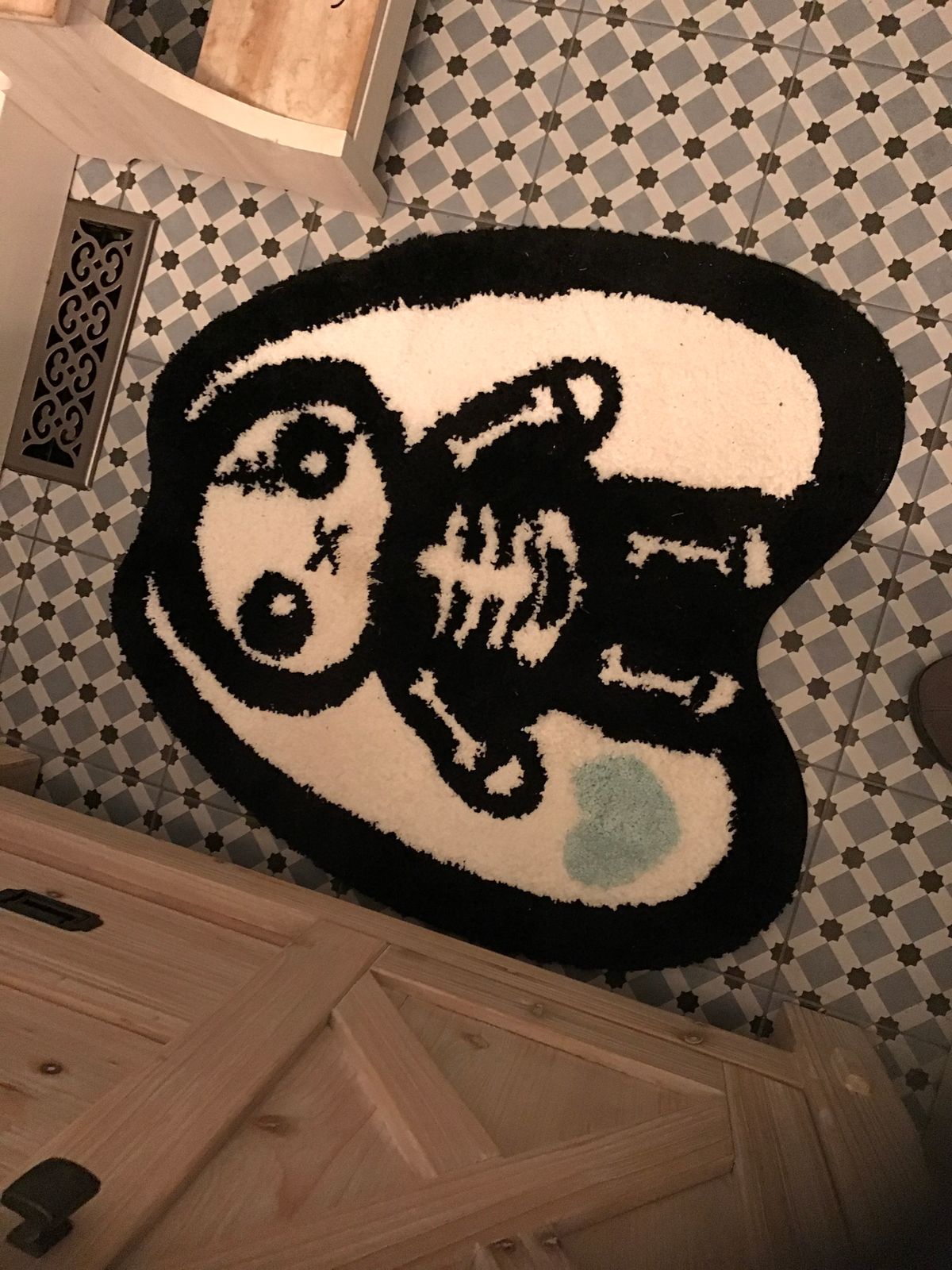 Everywhere it lives, it brings a playful reminder that skeletons are not just for Halloween, they are forever. Soft underfoot, bold in design, and ready to make your guests laugh (or groan) with boney puns, this rug is perfect for anyone who wants their floor decor to have a little extra spirit.