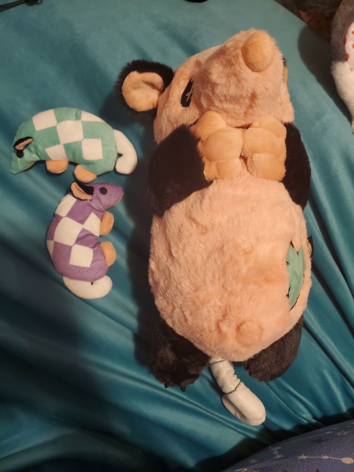 I'm glad yall decided to fix the color and make it more cream orange than bright orange and I'm glad u fixed the face and nose, I do think it needs a bit more tweaking on the tail and the "babies" so it goce more possum vibes - I think the tail should be a bit longer and maybe have the babies attached from the bottom of their bodies so they look like how baby opossums would have their young carried on their backs... also think adding a pouch in the stomach with a little zipper would be a cool thing to add to put the "babies" in to show off that even when we are socially phobic of others that even without their presence they still are within ourselves making that feeling of knots we get in out stomachs... but this is definitely something I will HAVE to get ... I love opossums and I'm glad that it's been created for someone who has an issue that have, though tbh I'd still get it because it's a opossum!!!! And everyone needs an opossum in their snuggle pile 💓
