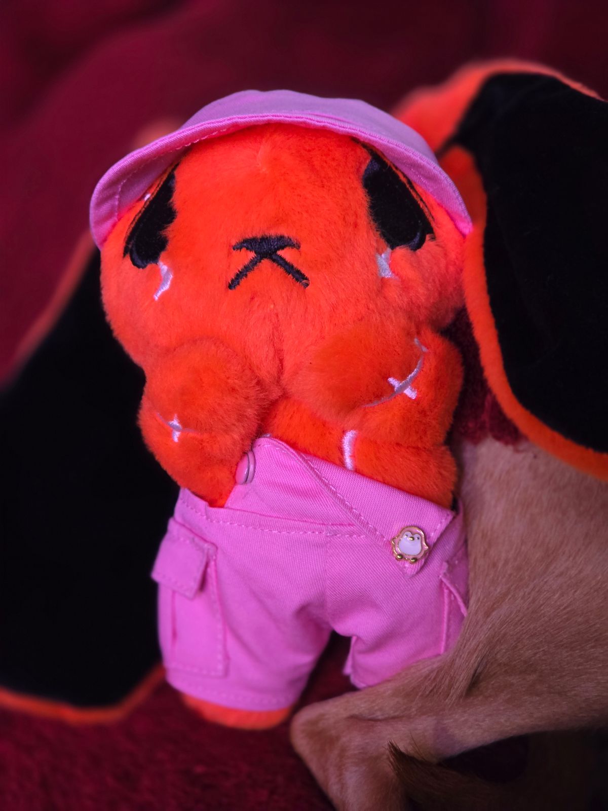 Mini Plush Outfit - Pink off the Shoulder Overalls