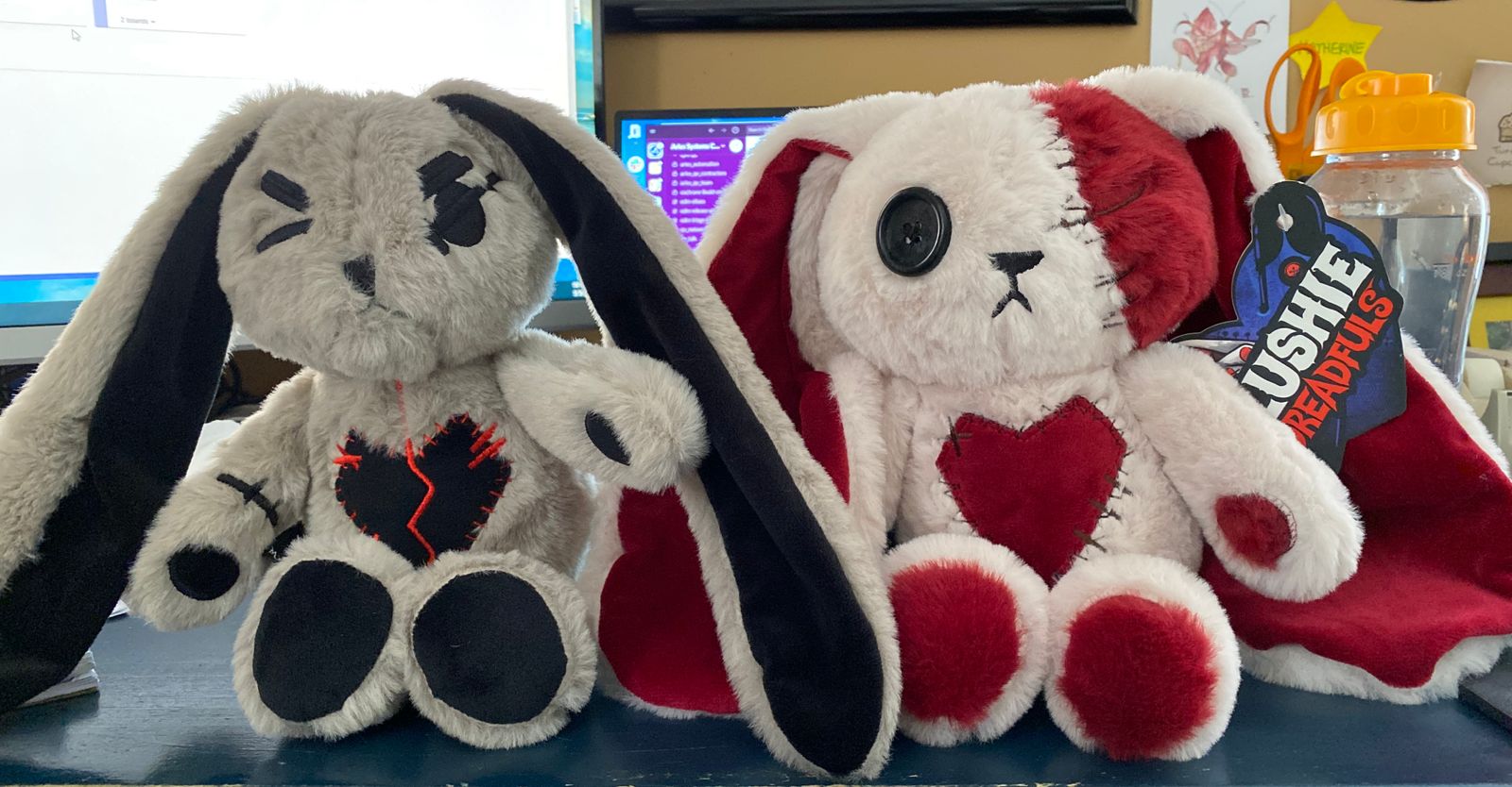 The angry rabbit is perfect for when I'm cursing my late husband for leaving me far too soon. So soft and cuddly, his ears are comforting to stroke when going to sleep. Well made bunny and good to have at my side for grief waves.
