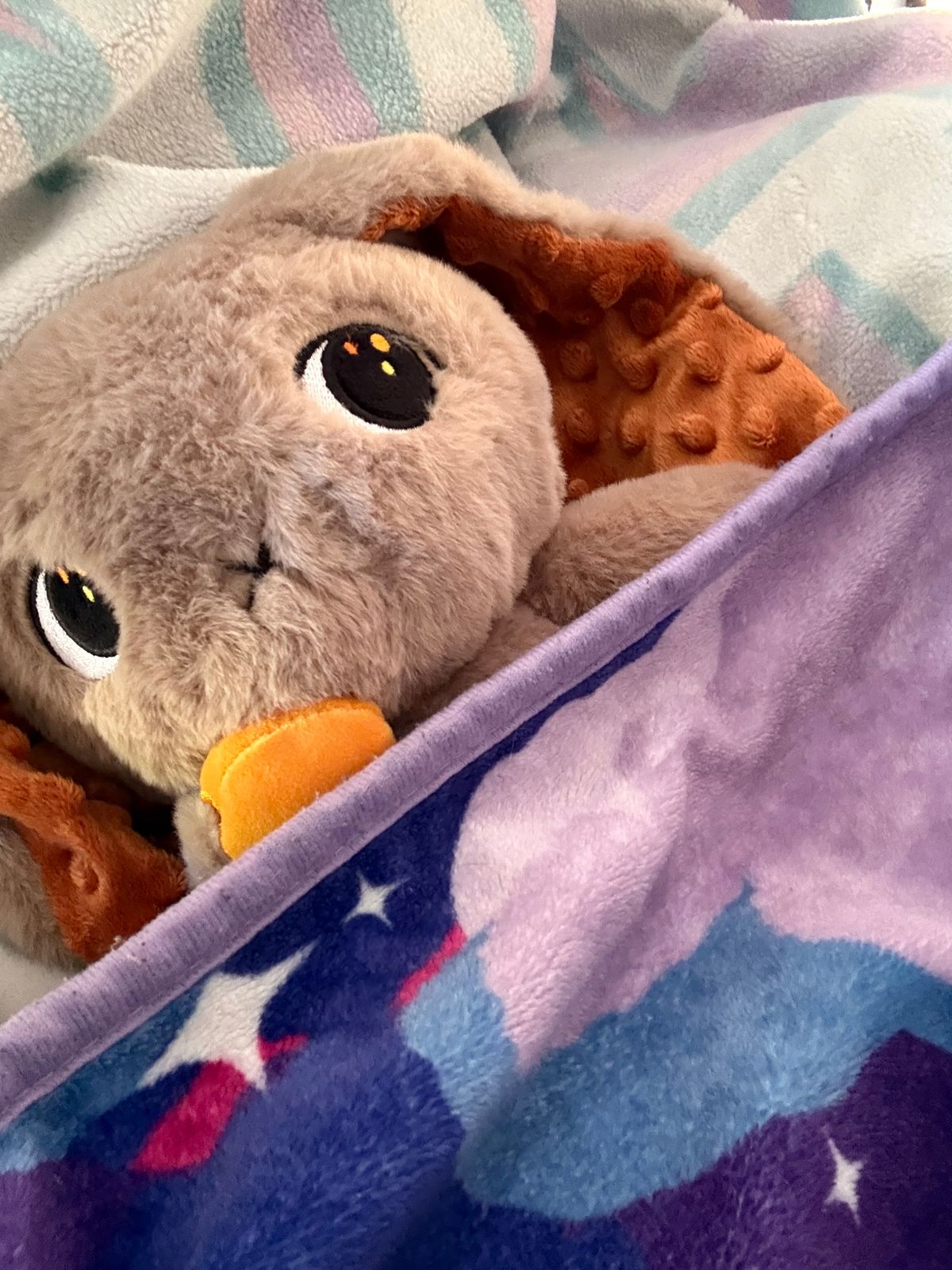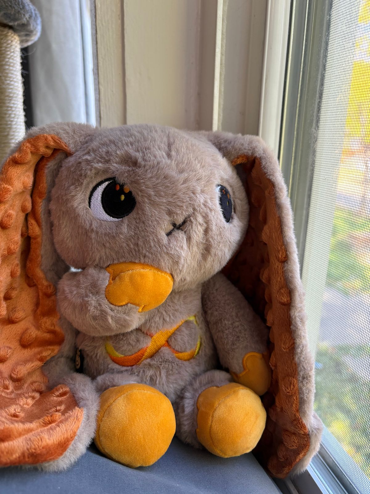 I am so happy with this new version of the autism bunny. I went through a major ordeal receiving this one because my first package was stolen at delivery. Customer service was amazing and gave me a refund while I waited for my new plush to arrive. I was so relieved and overjoyed when this little guy came safe and sound. Now I keep him on my bed and I like feeling the raised circles on his ears. This plushie is definitely worth it!