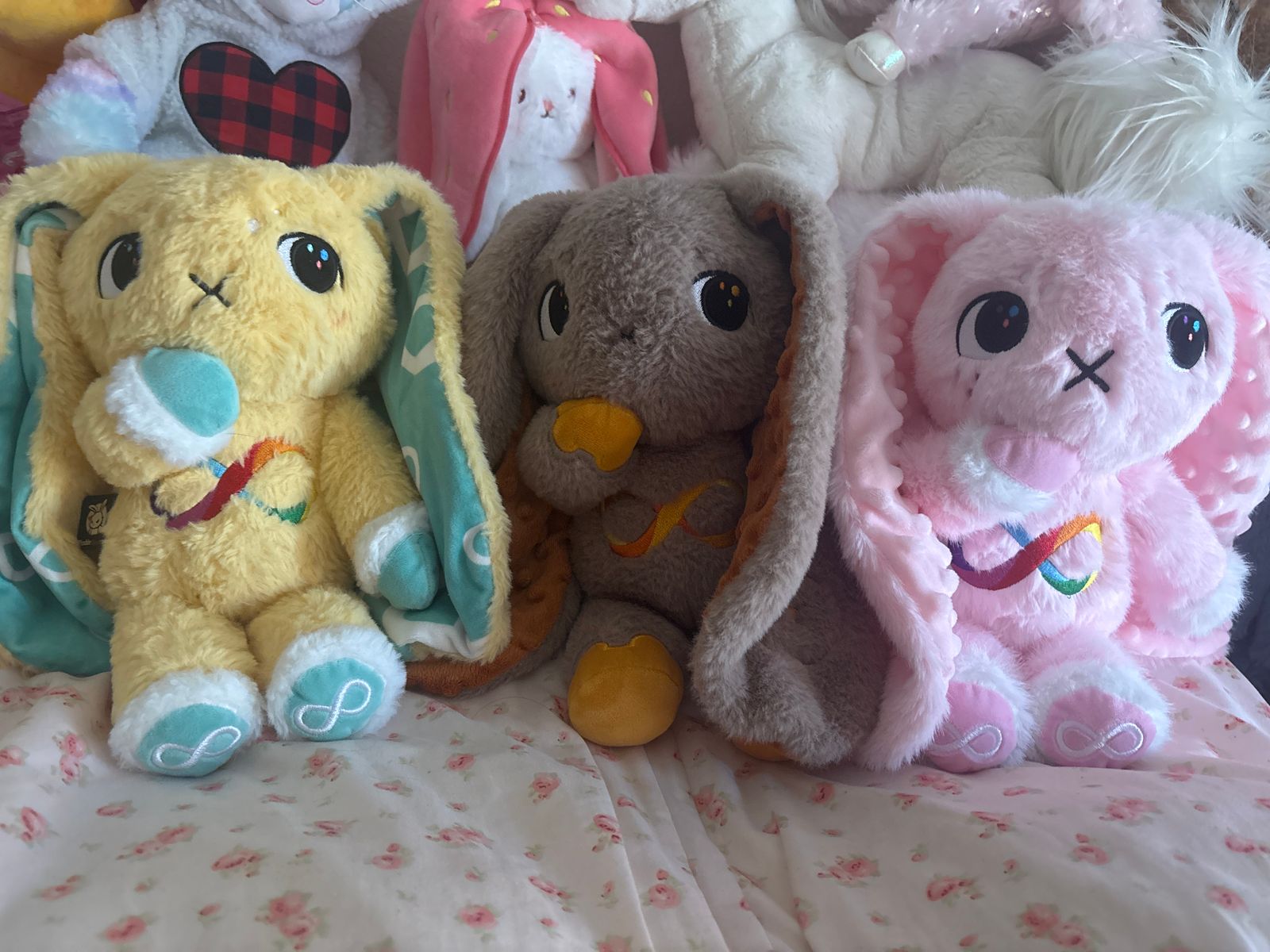 I got the second batch version with the magnetic paw and canvas bag and I am obsessed! I have been wanting an autism bunny for years now, but I wasn't a fan of the color palette. However, I am obsessed with this one. The fur they used for the body is extremely soft and can be petted in any direction without going against the grain and feeling "incorrect". The dot minky ears was a genius design move because they provide an intriguing texture and appearance, but ALSO pop in and out similar to a pop it, which is super calming for me.