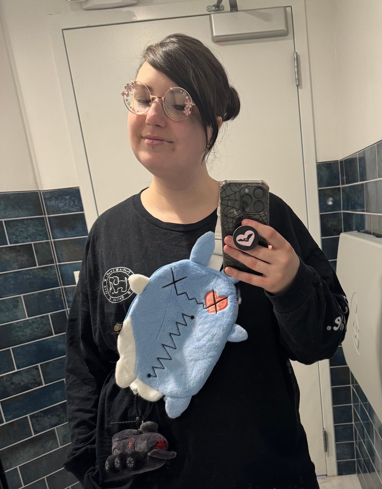 i'd been wanting to get this guy for a little while 'cause the design of the numb bunny is just so cute! i decided to finally go for it and i couldn't be happier - there's a surprising amount of space, perfect for carrying your essentials! (i usually carry my wallet, keys, wireless earbuds and a couple of knicknacks in mine, but my phone could also fit if necessary!)
