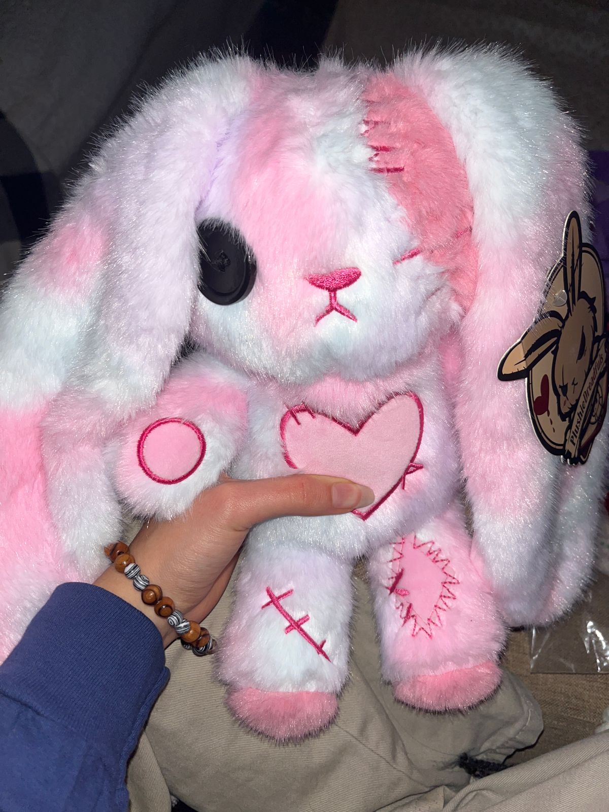 It has a perfect size for hugging and the fabric is so soft and amazing quality. I love that is slightly crooked because it gives the “heartbreak” vibe and a uniqueness to it. The meaning behind the plushie is very powerful and it’s a welcome companion in a tough time. I love the fact that is bruised and battered without losing its “cuteness” factor. I love them very much. The colors are the sweetest as well, I was scared because I’m not much of a “pink” person, but ti be honest, this color is exactly the softness that we need after a heartbreak, I thinks it’s just right