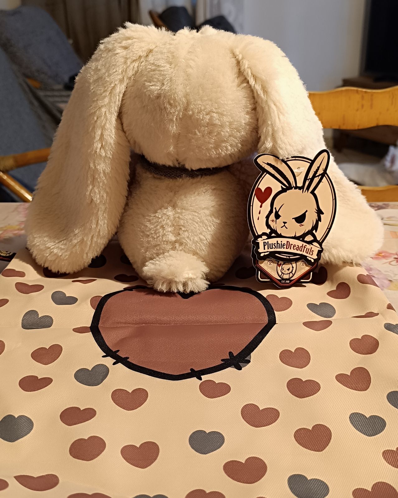 The Plushie Dreadful - Love Rabbit comes with a stitched heart, a patched-up head, and more cuddles than you can fill a rabbit hole with.