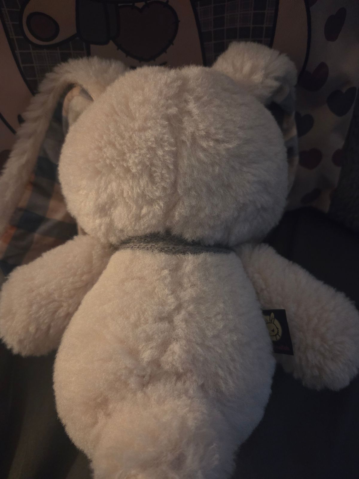 Super cute, love the colorway. Only disappointment is that its not nearly as soft as the other bunnies. The Keychain version was even softer. Plaid Love bunny is soft, yes just not as I'm used to. The feeling and texture is that its been washed.