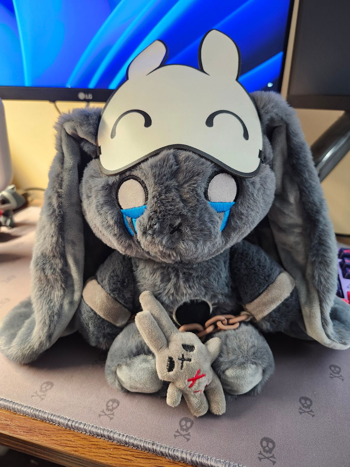 I have complex PTSD due to childhood trauma and verbal, mental and emotional abuse. I was struggling with my diagnosis and wether what I had endured was real. I have never felt herd or understood until I found you guys. I call him PT. When PT arrived everything became real, I wasn’t crazy or making things up. I really went through those things. He is such an excellent representation of how it feels hiding behind masks of fake happiness and anger when you feel broken inside. The chains represent so well the powerlessness I feel always controlled by what happened to me. Unable to escape. I also love the black sun on his chest it makes me think of the darkness of the pain and brokenness that keeps the real me from shining through. I also anxiety bunny and plan on buying BPD and depression bunny. Thank you so much for what you do. You make people feel seen and heard.