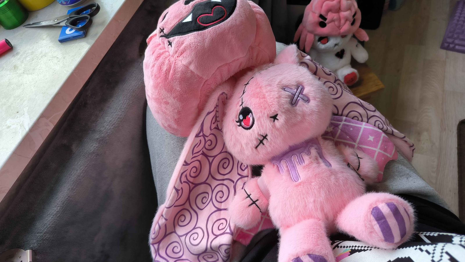 I have to say Tricksee Belle is my favorite out of all the plushie dreadful plushies I own from this company. My daughter and I , I have to say fortunately or unfortunately own many of the plushies because we have many medical problems. For example, my daughter has the autism rabbit, celiac disease rabbit and many others. I have the hypothyroidism , breast cancer or cancer warrior rabbit and asthma rabbit and many more. But Tricksee was different because she is not a health rabbit. She has the biggest pumpkin head and her smile just makes me laugh. She has the sweetest bow on her head. The typical floppy bunny ears and the fluffy tail. I have not tried it yet but I believe the pumpkin head comes off to reveal her actual face. She is so soft and huggable. She makes me forget that we have so many medical problems that unfortunately we have. But she also makes me feel that we shouldn’t give up and keep going because life can be funny and keep your head up. She makes me forget she is a Halloween rabbit and is just here to make us smile through the pain. I highly recommend her even though Halloween has come and gone. One day I will have the courage to see what she actually looks like underneath her head.