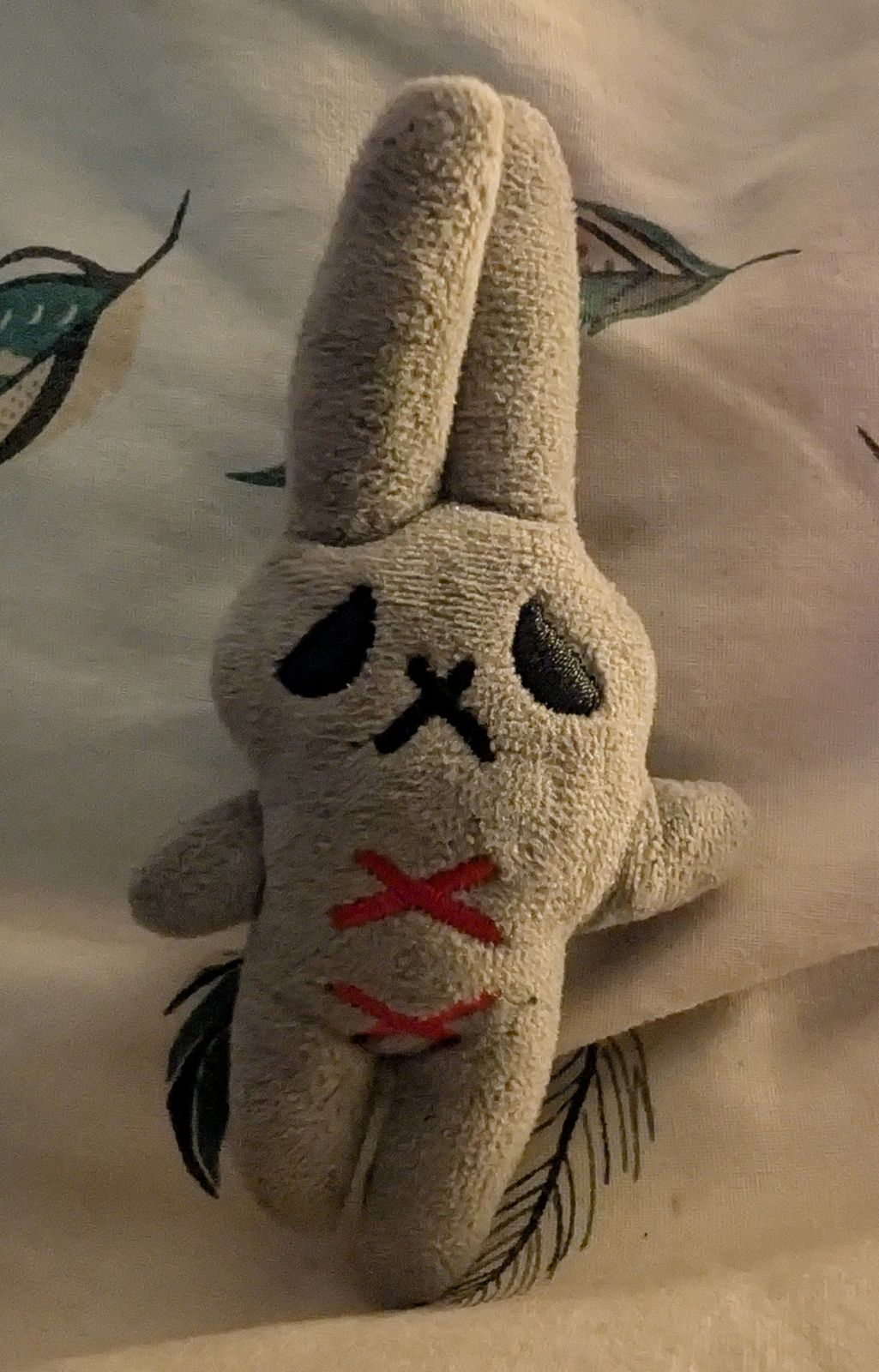 Trauma Bunny is Copyright of Mysterious LLC and is exclusively available at plushiedreadfuls.com. Plushie Dreadfuls is a trademark of Mysterious LLC