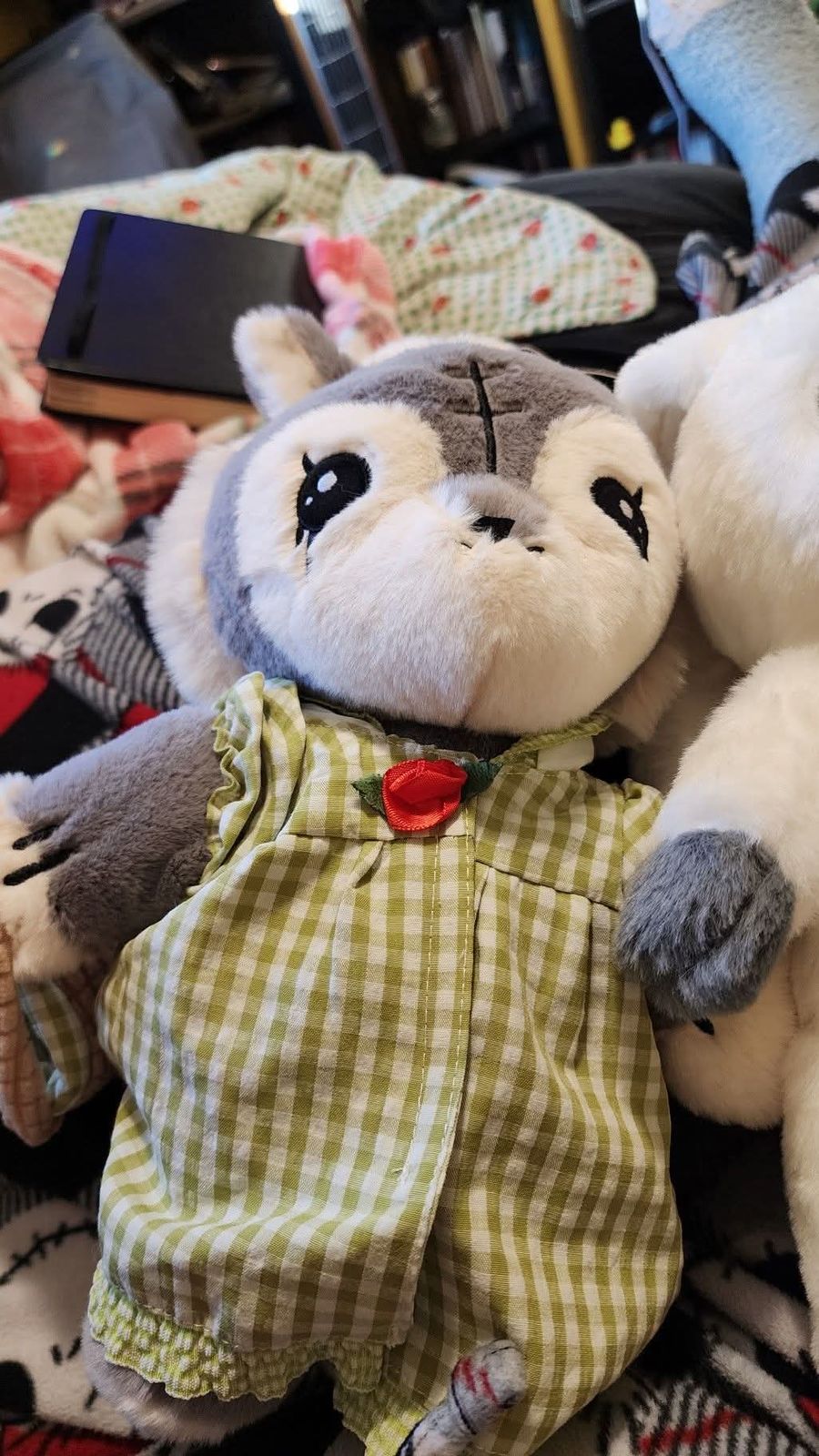 After adding the beautiful Red (riding hood) to my collection, how could I possibly pass on her grandmother, or rather, the WOLF, disguised as Grandma!?! How terrifyingly clever, yet so adorably cute. With a fluffy bun atop her head, an even fluffier tail, and being as soft as a Plushie Dreadful can be, she's a perfect companion, with her fun (soft) basket full of organs. ORGANS!?! Well, as cute as she may be, her story is delightfully sinister. The only improvement I would make would be on her dress, which, following the story, would be a nightgown, so really is quite perfect, but I would like it to be...oh, more, so I suppose I'll have to shop Mysterious for a wardrobe for her, or perhaps make her a frilly apron . I LOVE HER!