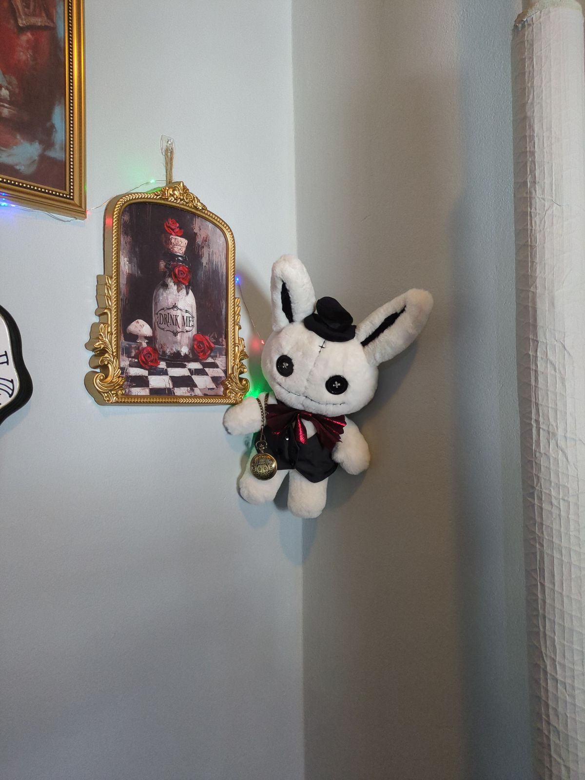 This rabbit looks even cooler in person then online. It's made perfectly and the tote bag is high quality. Plus the pocket watch is not only a very neat accessory but it works! I am a big fan of Alice in Wonderland and I couldn't be any more happy with this plushie.